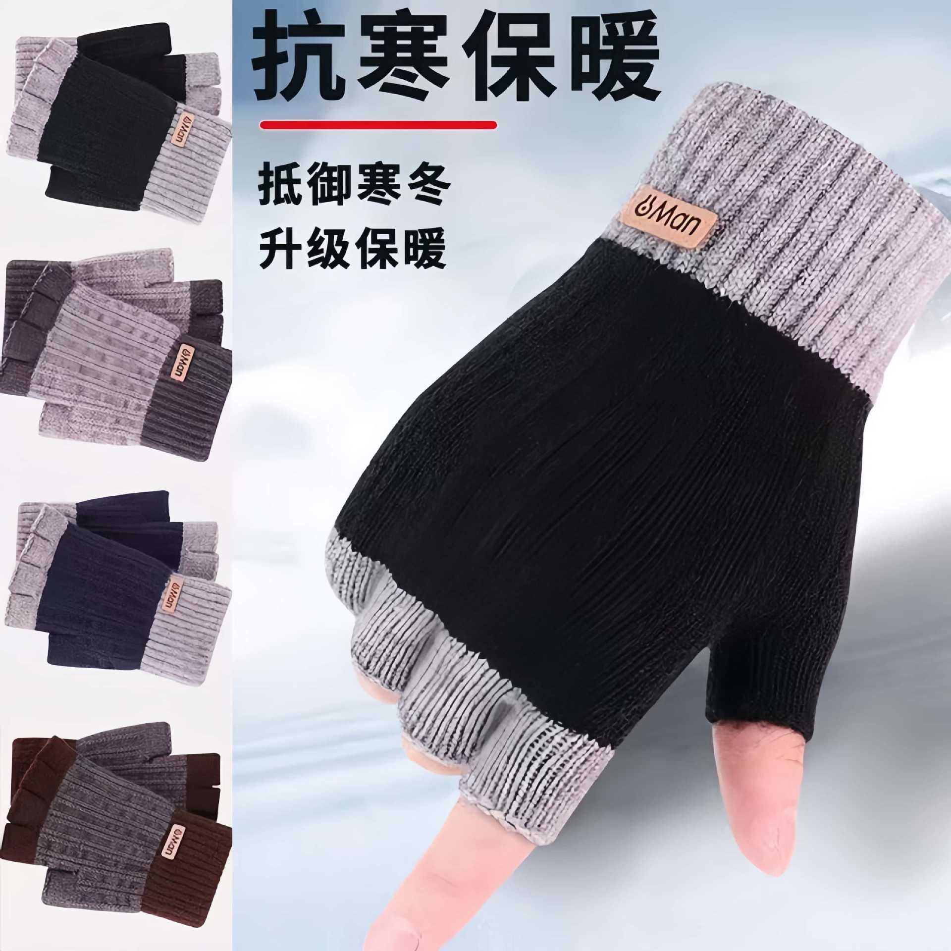 半指手套男露指冬季骑行加厚毛线漏指头学生写字针织保暖半截无指