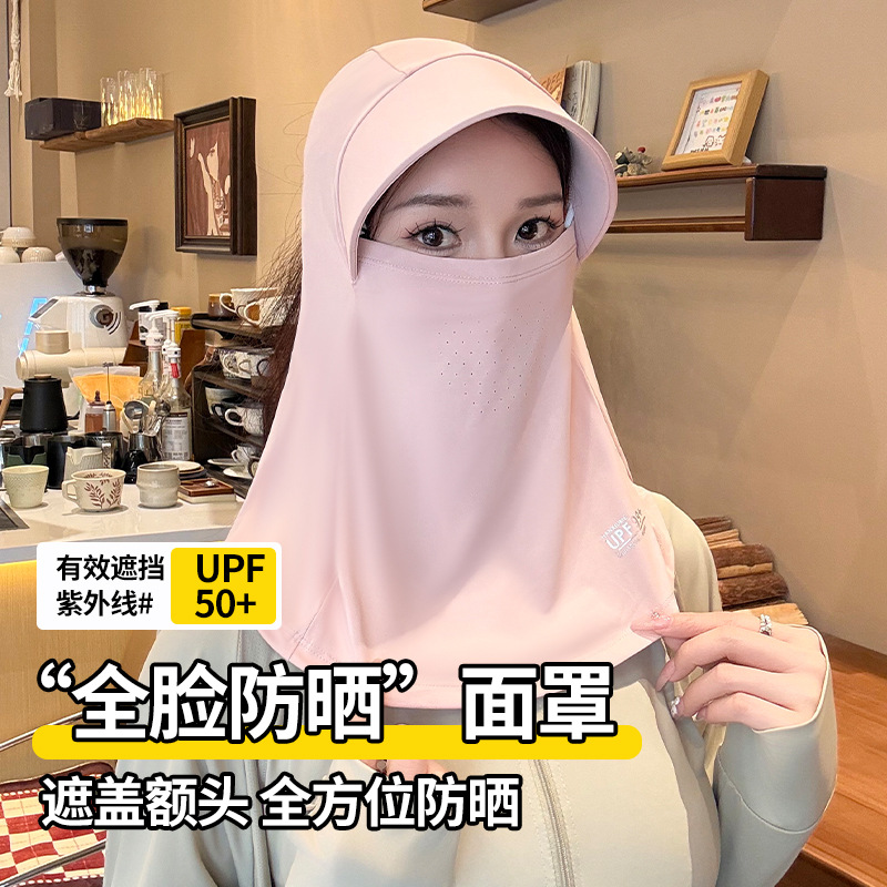 夏の新型全顔日焼け止めベールマスク通気性保護首額一体無痕日焼け止め紫外線防止マスク