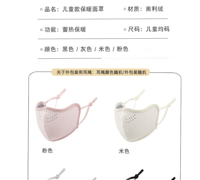 颜色 儿童澳绒口罩黑色,儿童澳绒口罩灰色,儿童澳绒口罩粉色,儿童澳绒口罩米白色