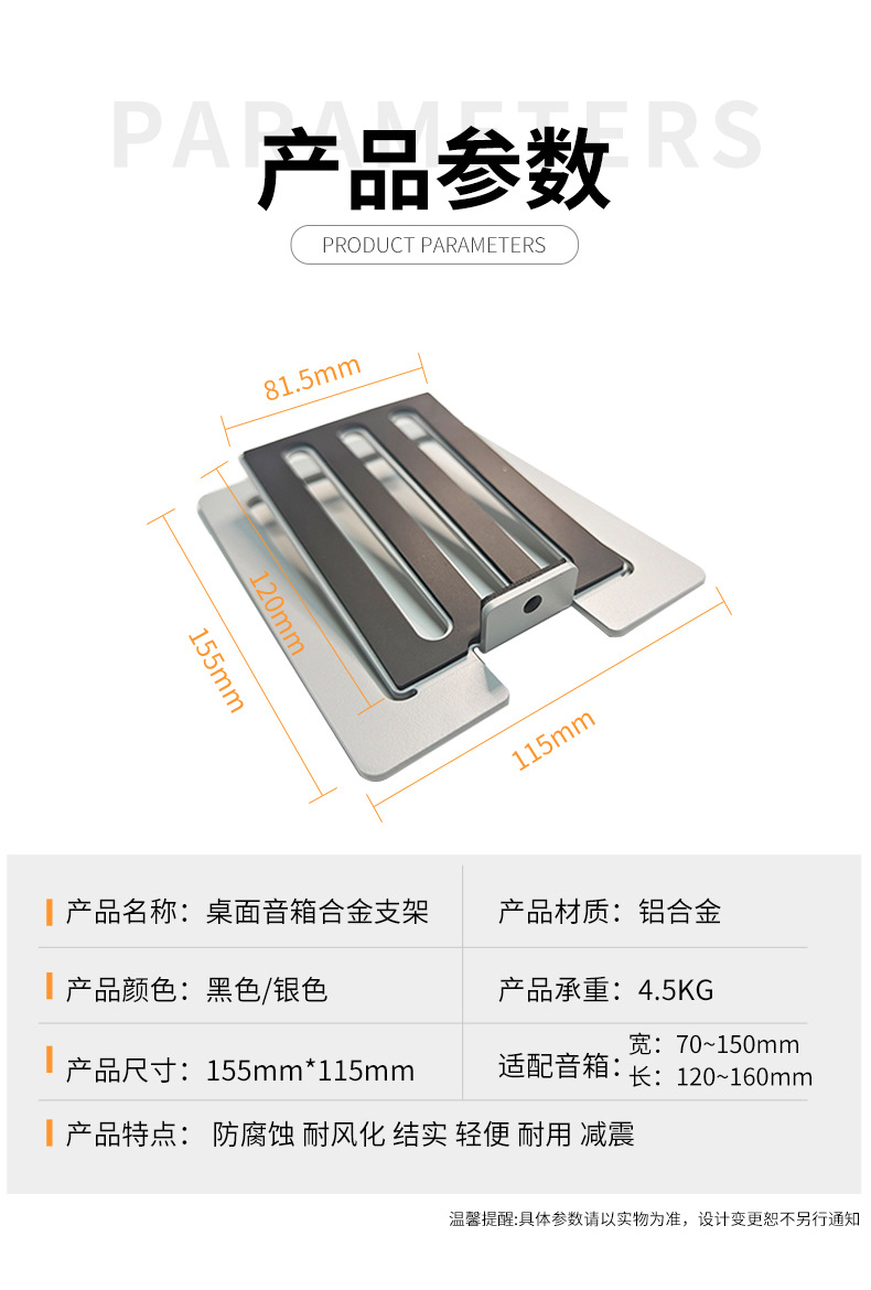 产品规格 黑色-HIFI小型音箱支架 一个,灰色-HIFI小型音箱支架 一个