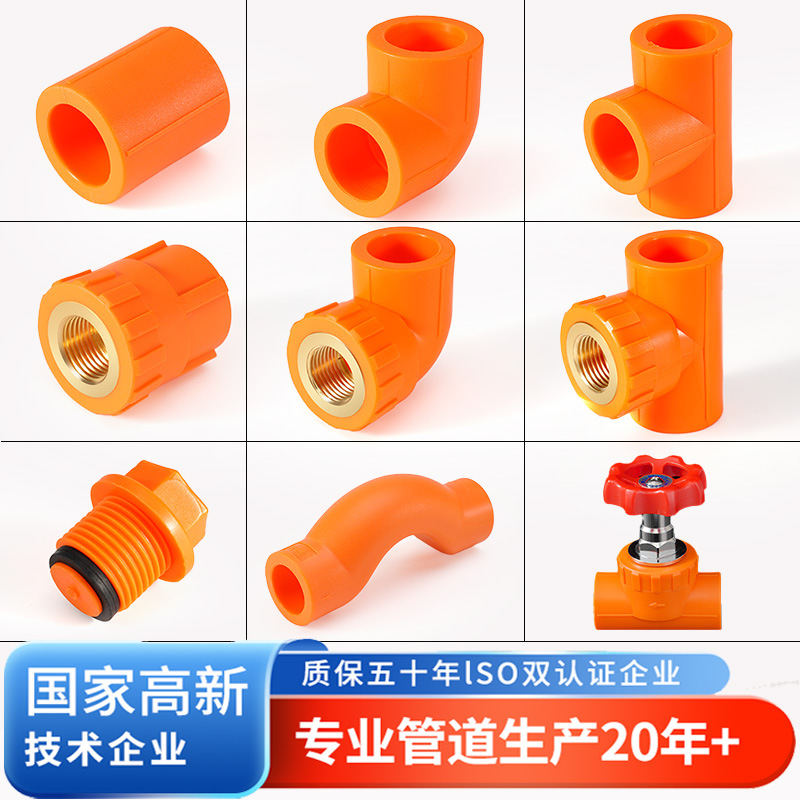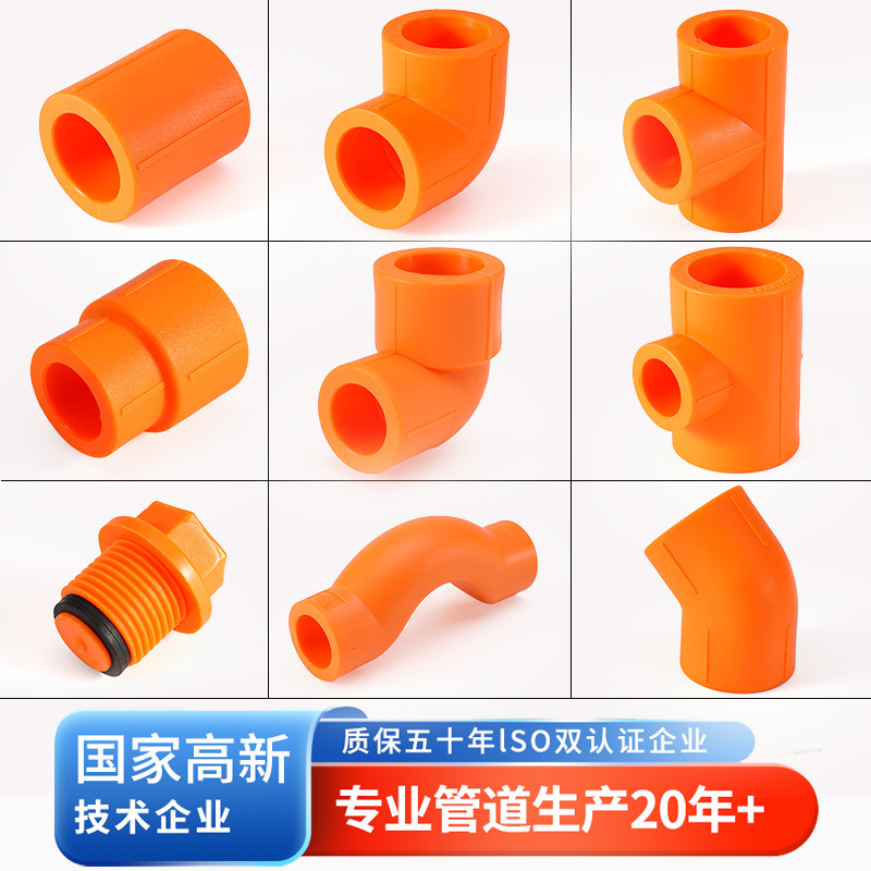 橙色ppr水管配件大全内丝4分6分三通直接外丝弯头ppr冷热水管管件