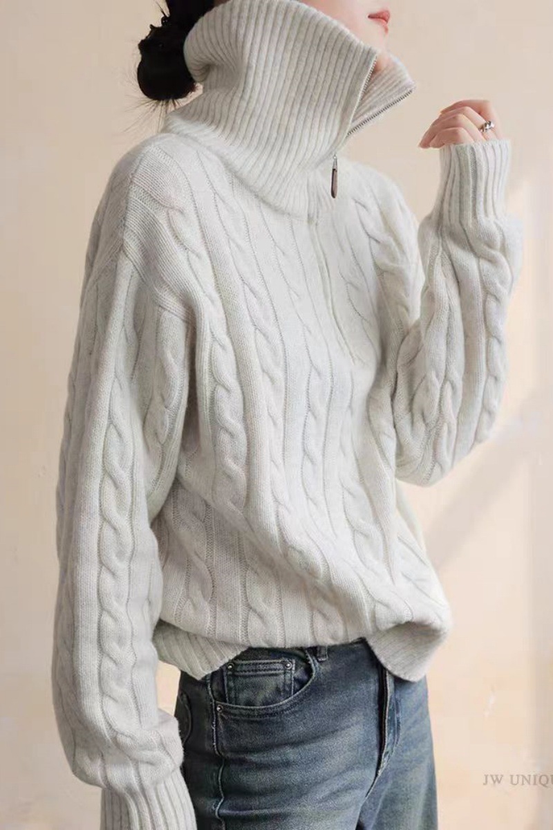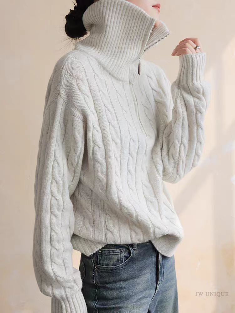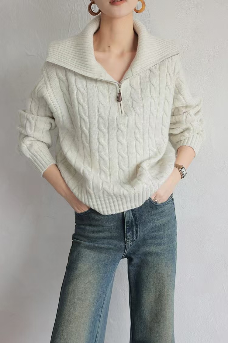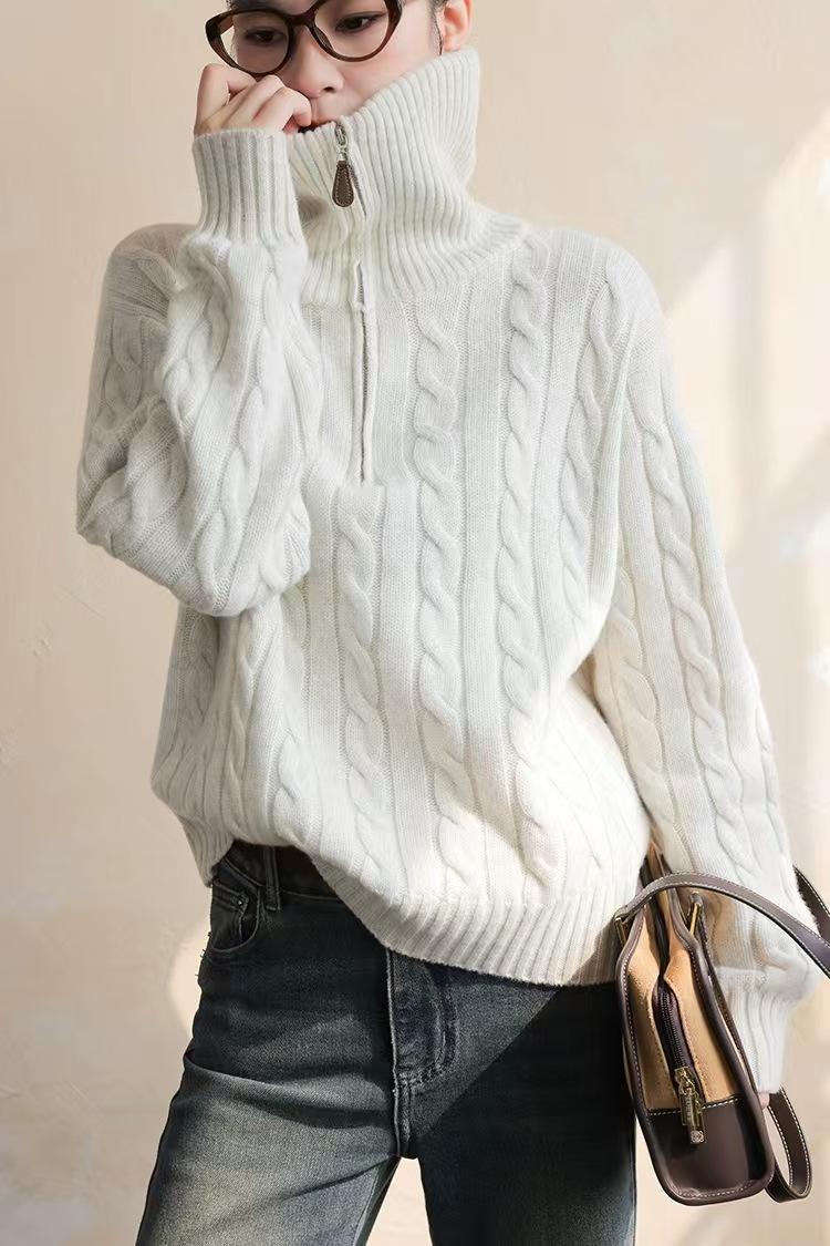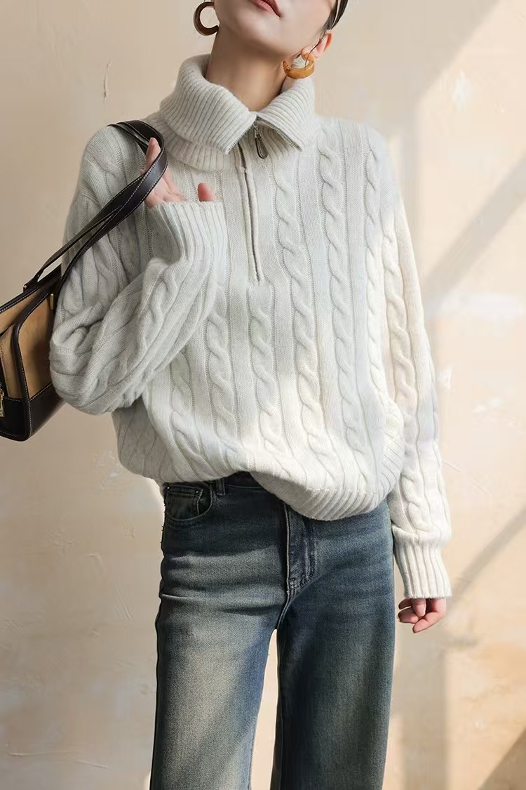 半拉链翻领麻花羊毛针织衫25秋冬新款高领打底慵懒小众设计感毛衣