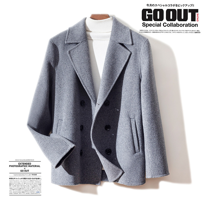 純粋な手作りのウールの両面のコートの男性の秋冬の軽いビジネスのカジュアルな毛のスーツのコートの襟の短い上着
