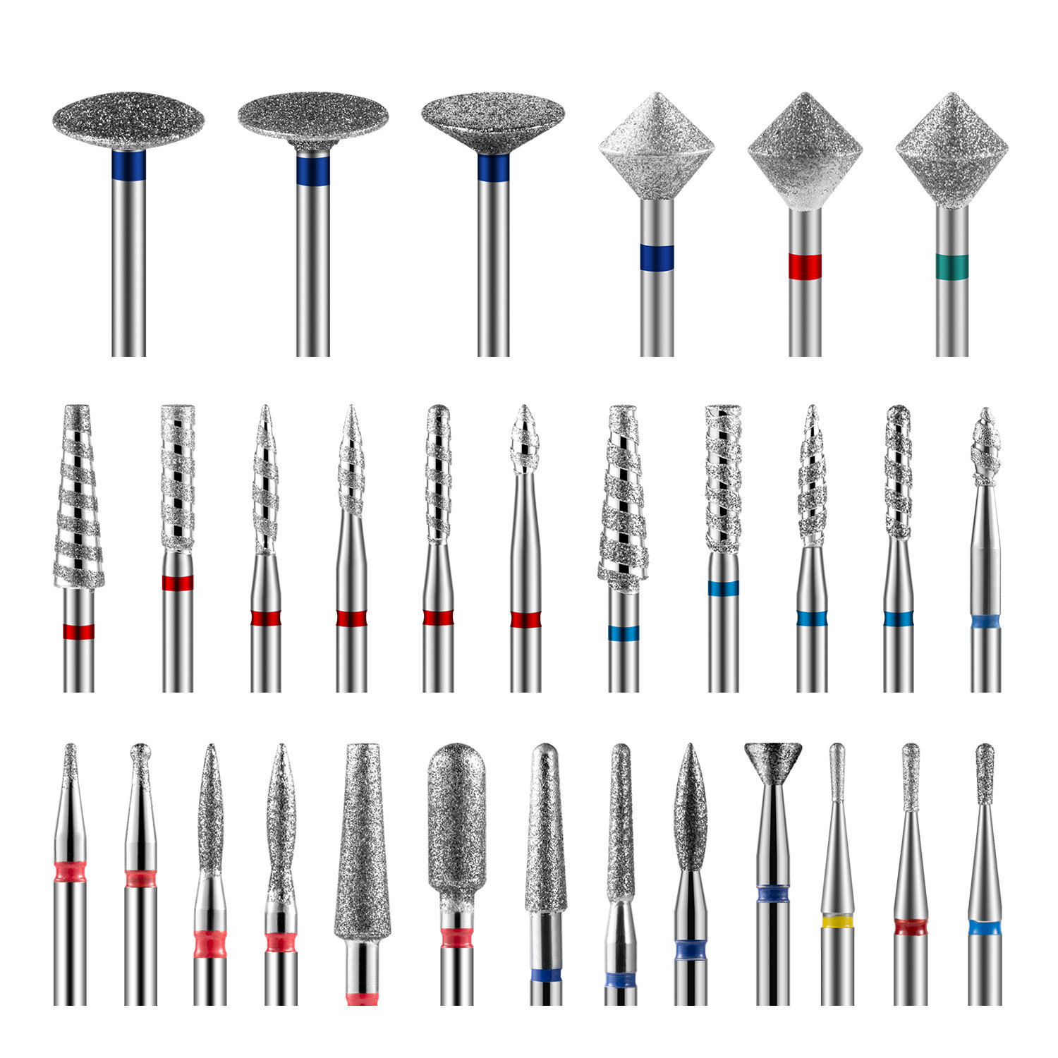 30本の金刚砂ネイル研磨ヘッドセットカラーチタン色ロシア式前処理研磨ヘッド2.35MM研磨ヘッド