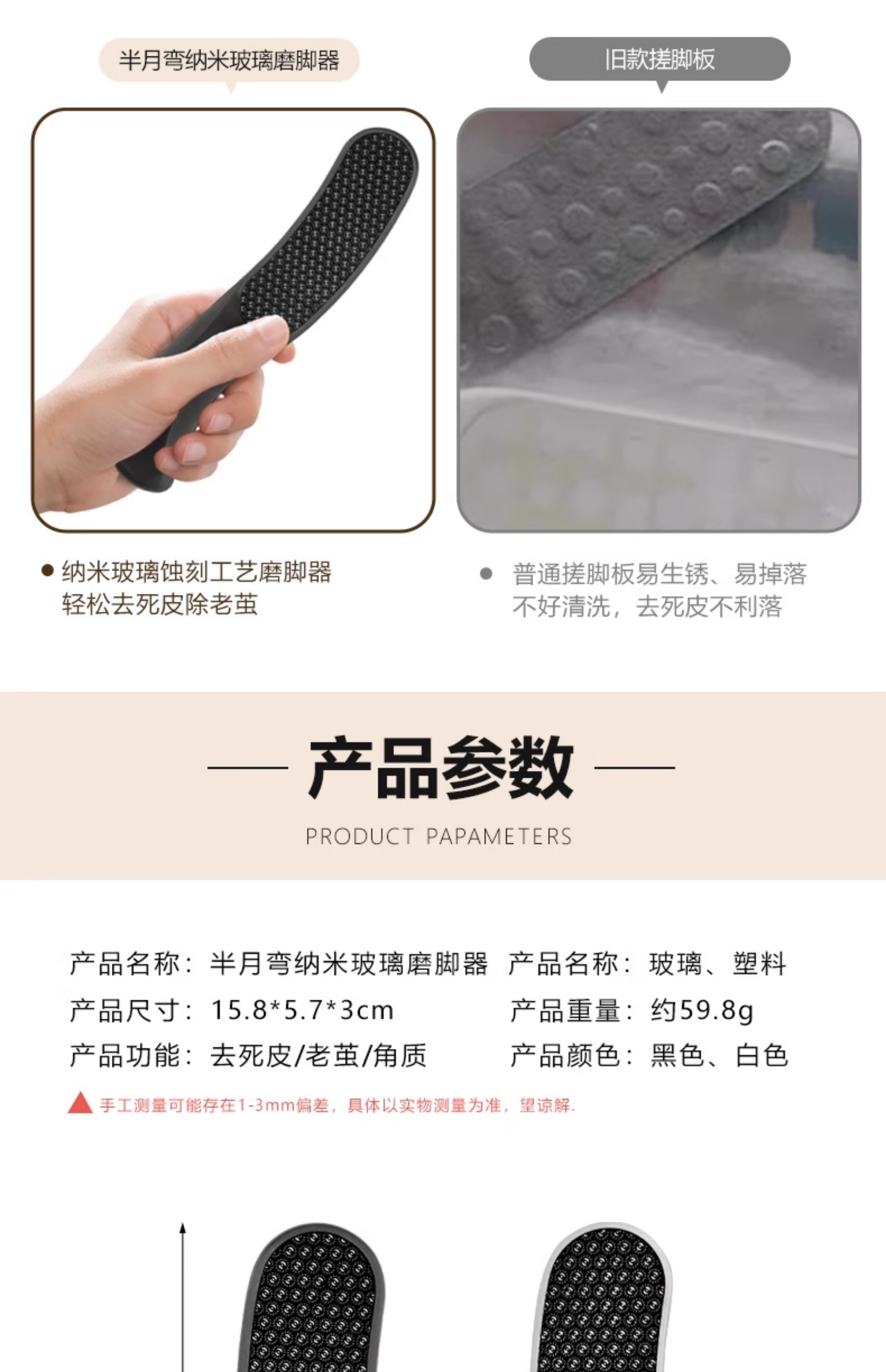 颜色 黑色半月弯搓脚板【纳米玻璃磨面】,白色半月弯搓脚板【纳米玻璃磨面】,白色+黑色搓脚板【纳米玻璃磨面】