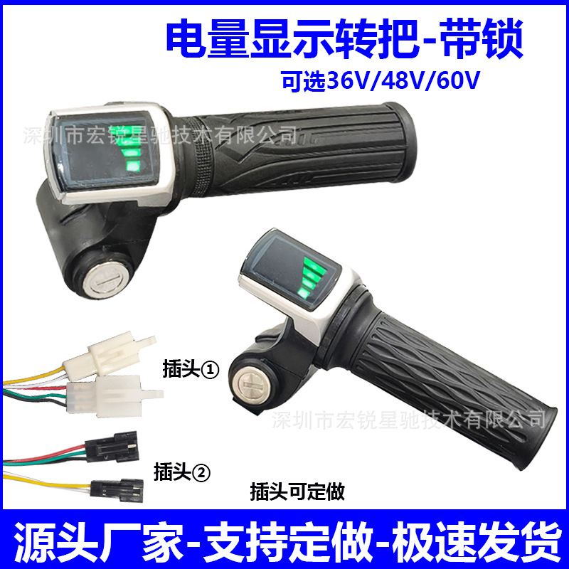 锂电动车转把绿光电量显示48v36v60折叠电动车滑板车配件通用