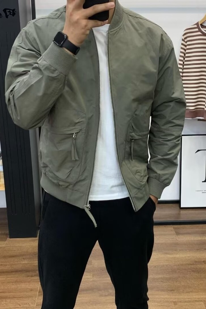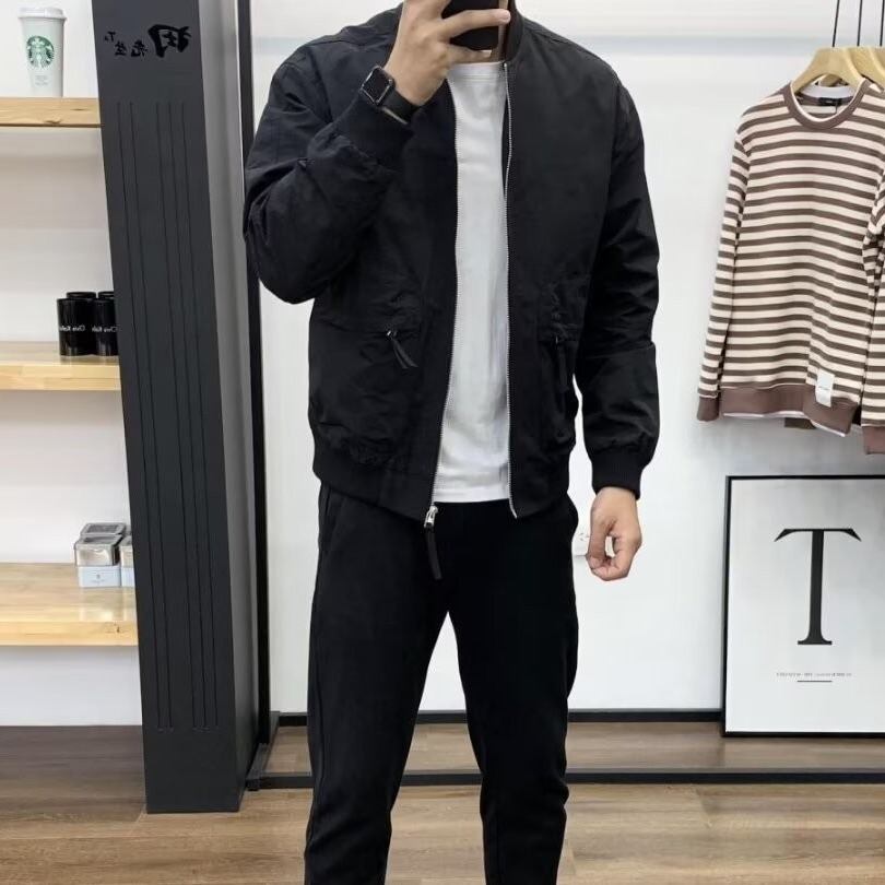 跨境春秋季修身夹克男百搭宽松工装立领外套男休闲运动显瘦夹克男