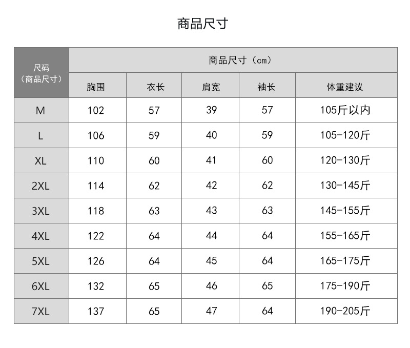 尺码 M,L,XL,2XL,3XL,4XL,5XL,6XL,7XL