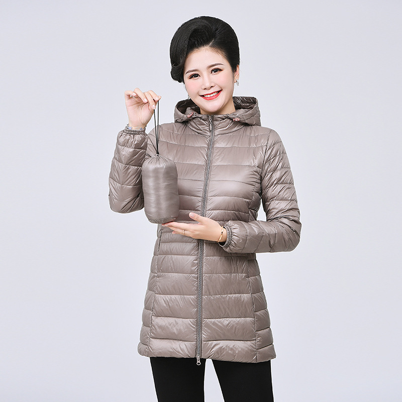 太って大きいサイズの薄っぺらなダウンジャケットの女性200斤の太ったmmの中の長いタイプの超軽量の超薄型の冬のお母さんの服