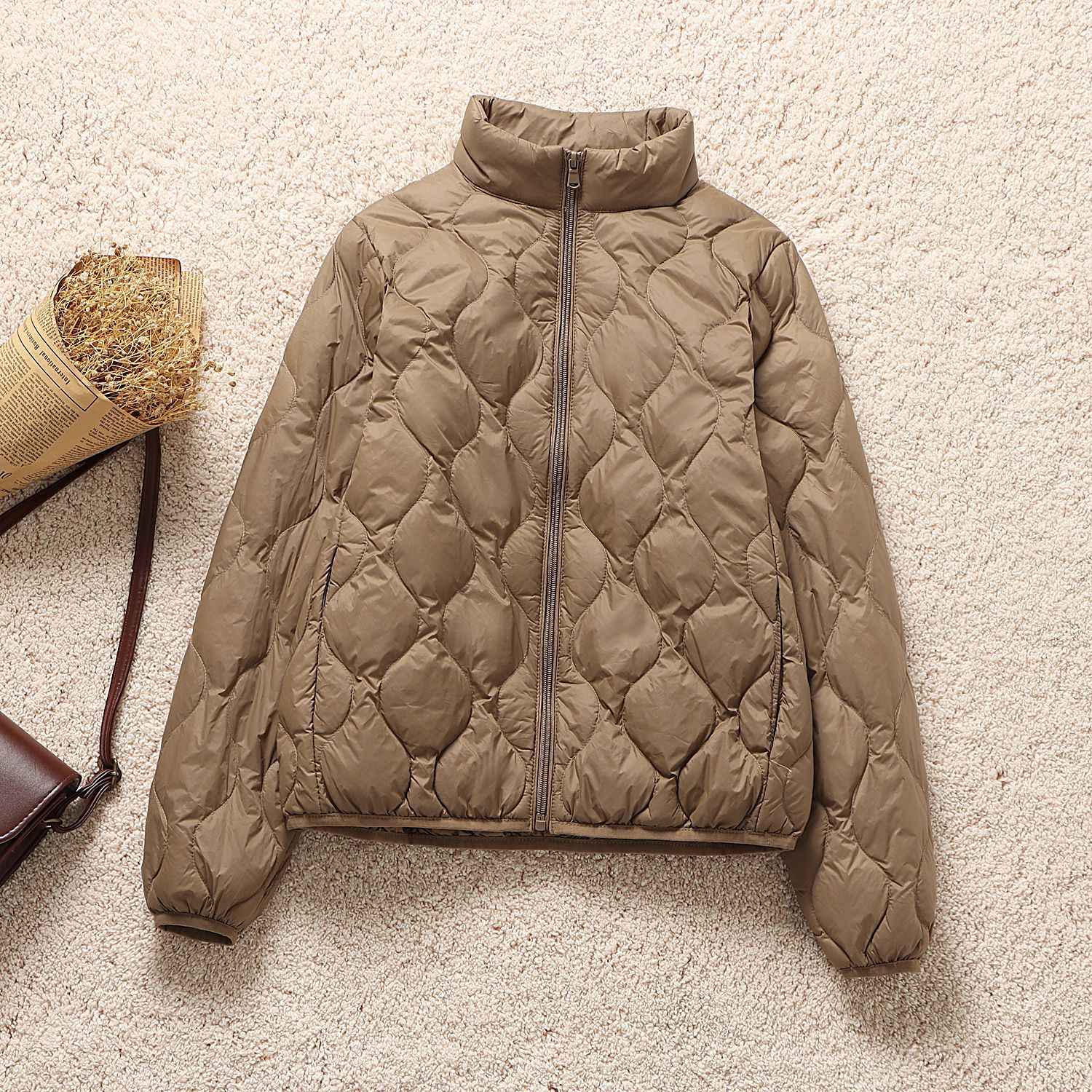 オフシーズン祥雲ダウンジャケット レディース ショート丈 小柄な方向け ママ向け スタンドカラー 軽量 ホワイトダックダウン おしゃれ 秋冬 軽量コート