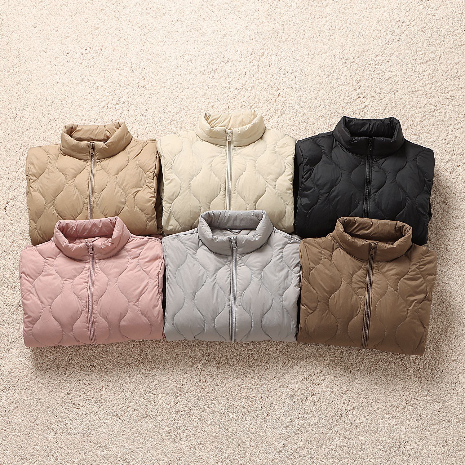 颜色 米白色,黑色,粉红色,褐色,卡其色,灰色,米白 拉链云朵立领,黑色 拉链云朵立领,粉红 拉链云朵立领,褐色 拉链云朵立领,卡其 拉链云朵立领,灰色 拉链云朵立领