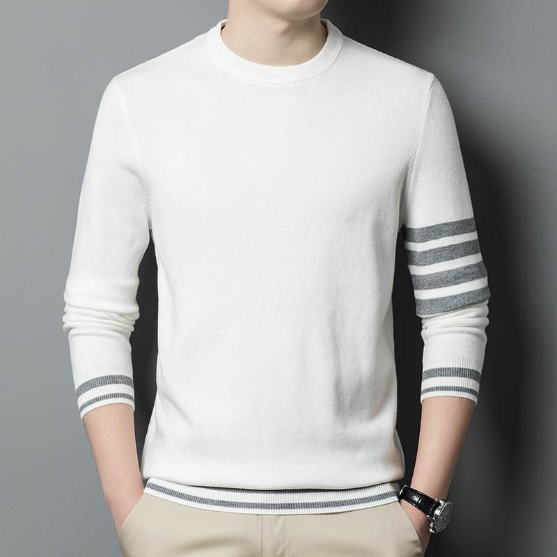 秋冬の新型男性のニットのストライプのジャカードの長袖の丸首の男性の底のシャツのシンプルなファッションのセーターの男性