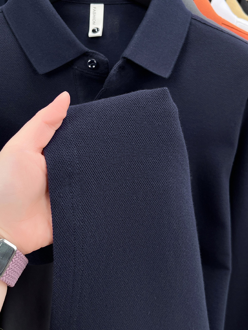 秋冬纯棉长袖polo衫男新款轻奢商务高级感翻领纯色款长袖男士t恤