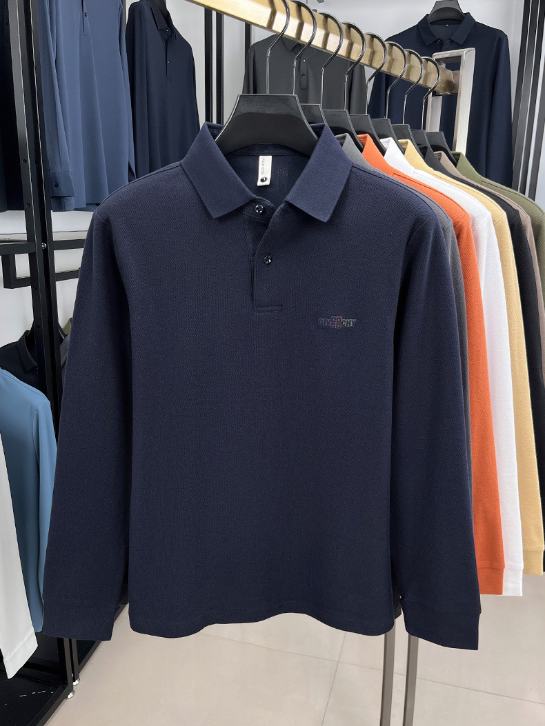 潤恩堡羅秋冬純綿スリット金男poloシャツ長袖珠地綿刺繍中年襟poloシャツ男