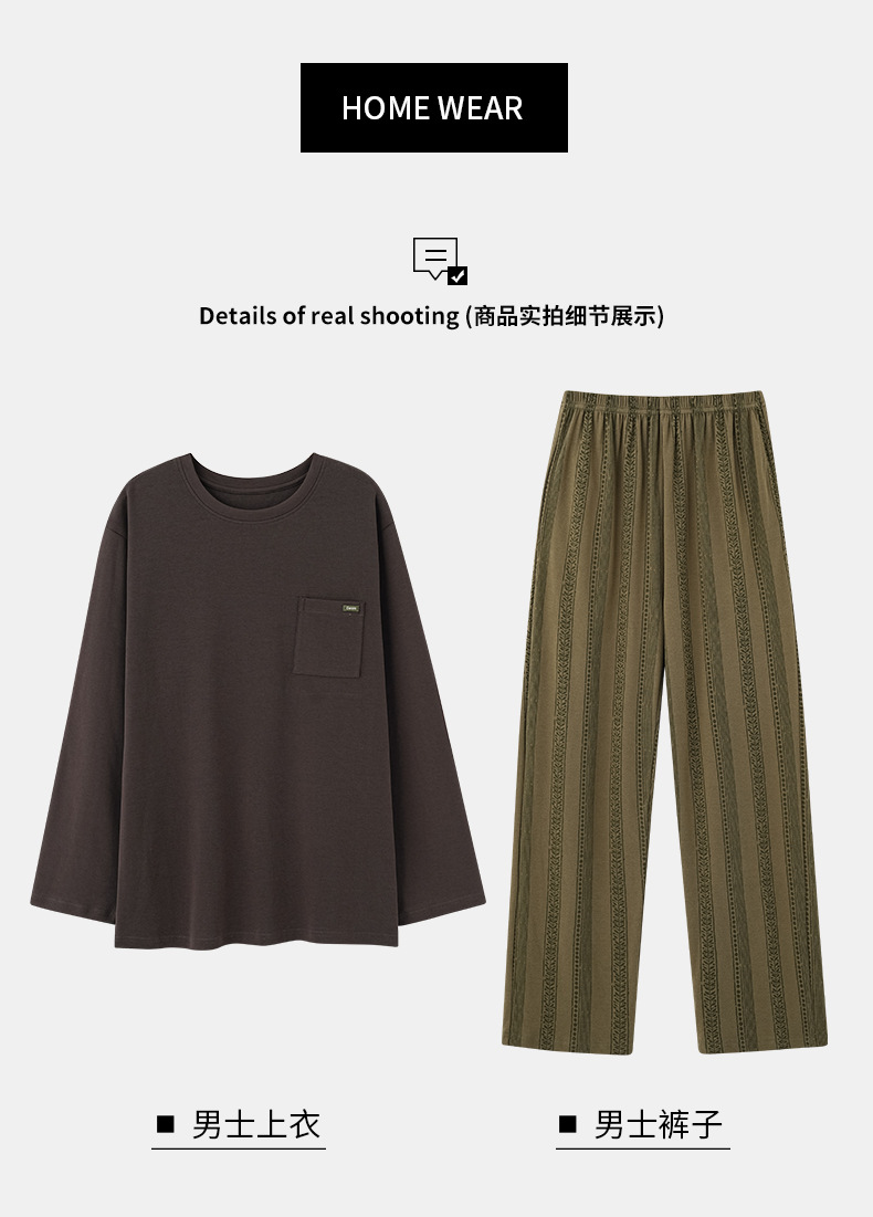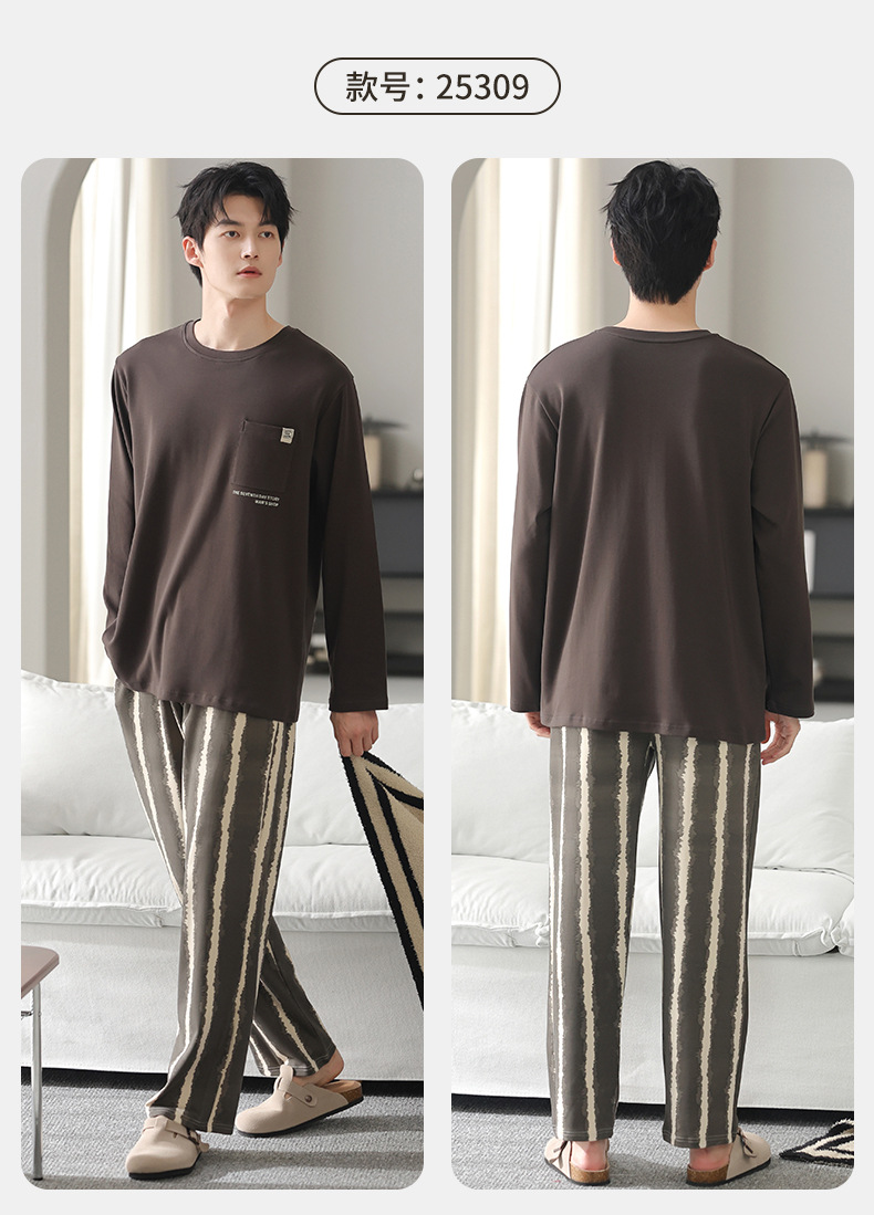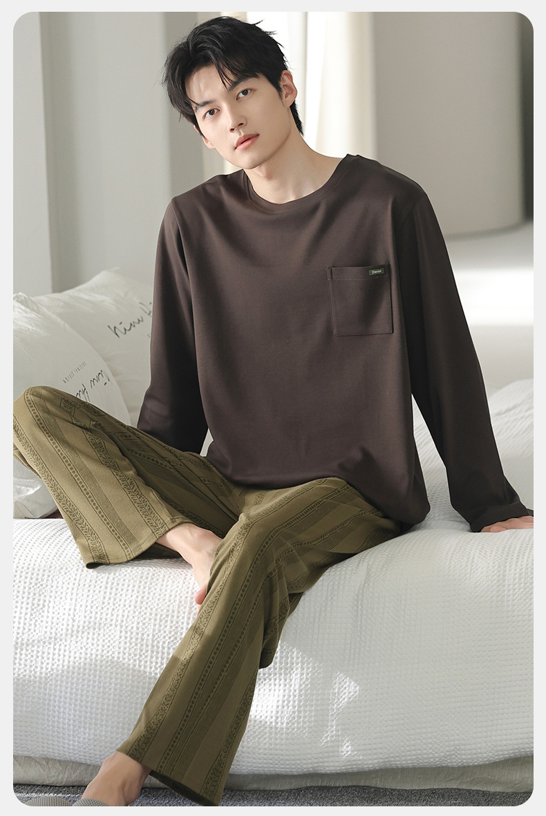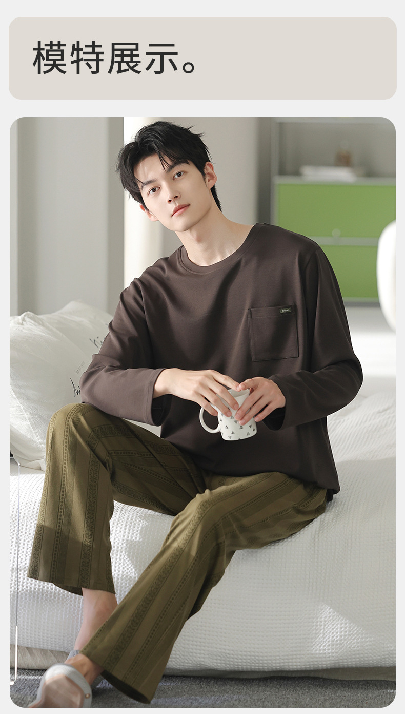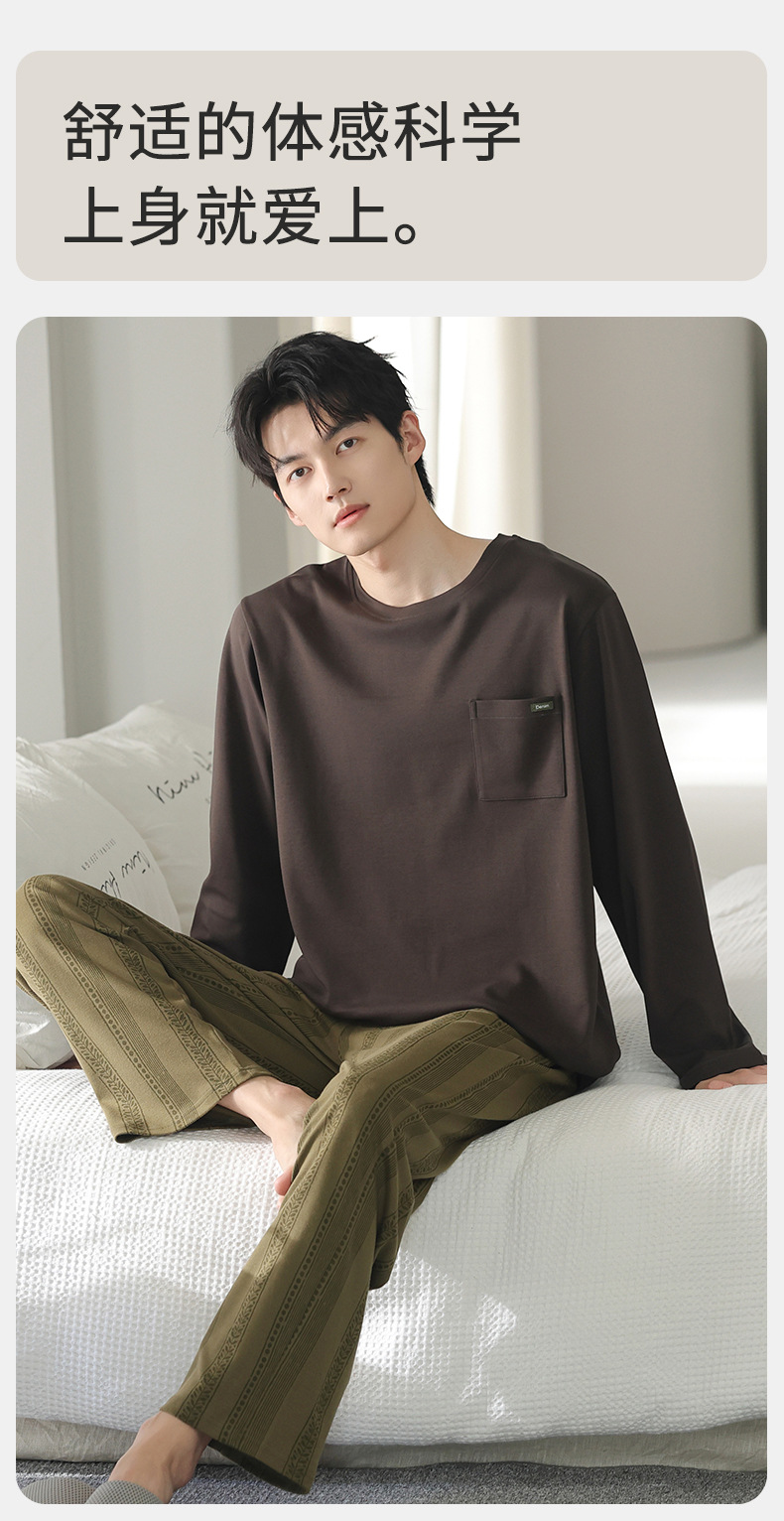 100%纯棉睡衣男士秋冬季长袖长裤休闲可外穿高级感全棉家居服套装