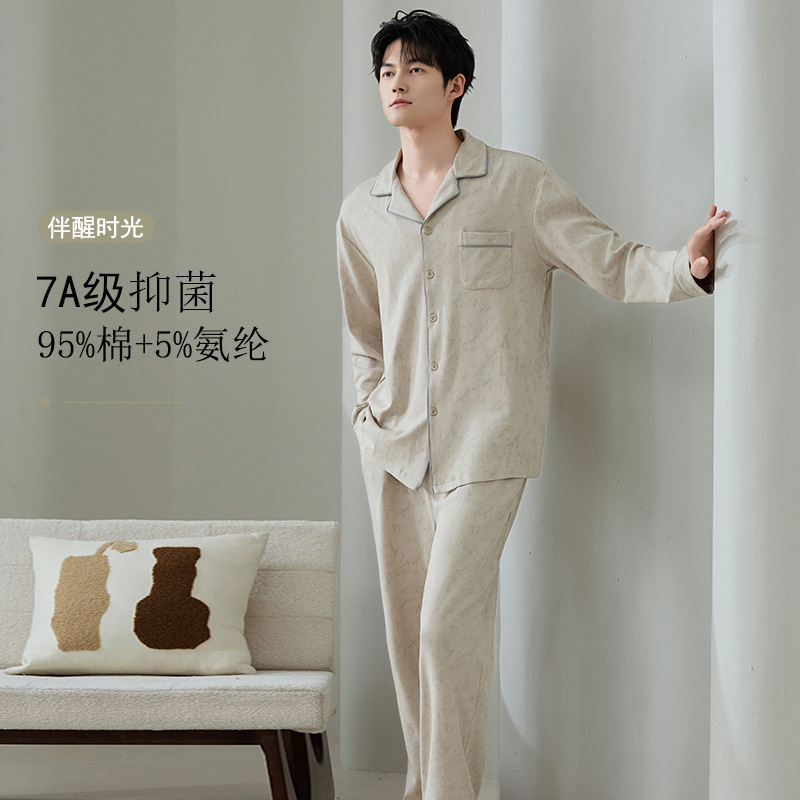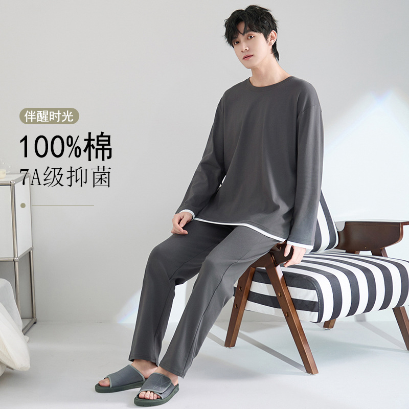 A类抗菌睡衣男士秋冬季纯棉长袖高级感大码可外穿全棉家居服套装
