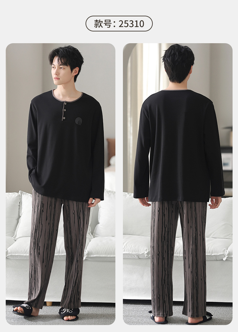 100%纯棉长袖长裤睡衣男韩版宽松简约休闲男式高档全棉家居服套装