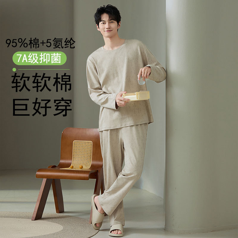 【95棉】A类抗菌睡衣男生秋冬季纯棉长袖长裤男士大码爽棉家居服