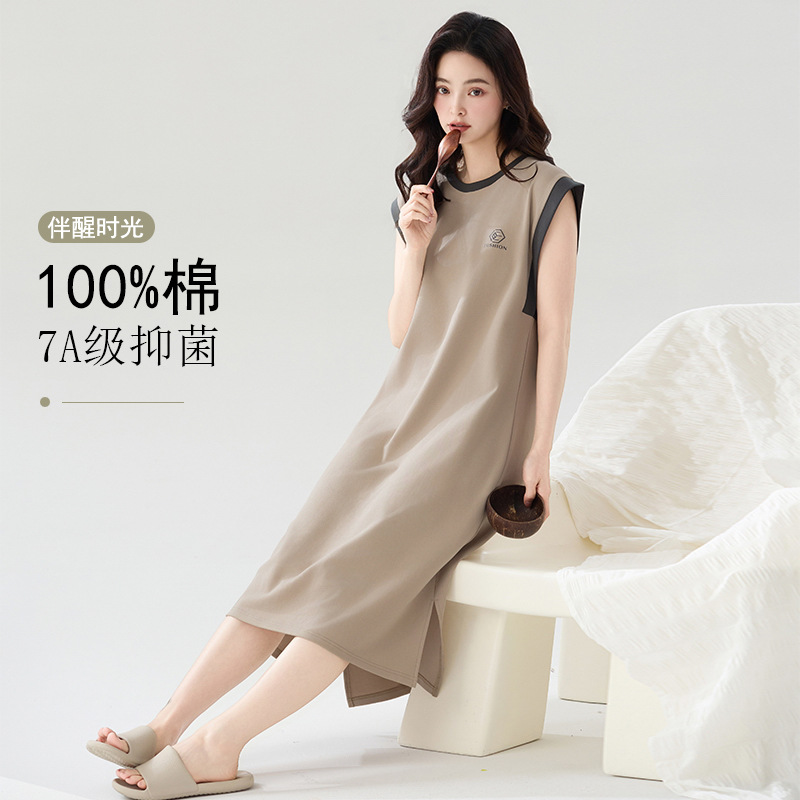 クラス A 抗菌綿女性のナイトガウン女性の夏のベストノースリーブドレス女性のミッドレングス大きいサイズの綿のパジャマ