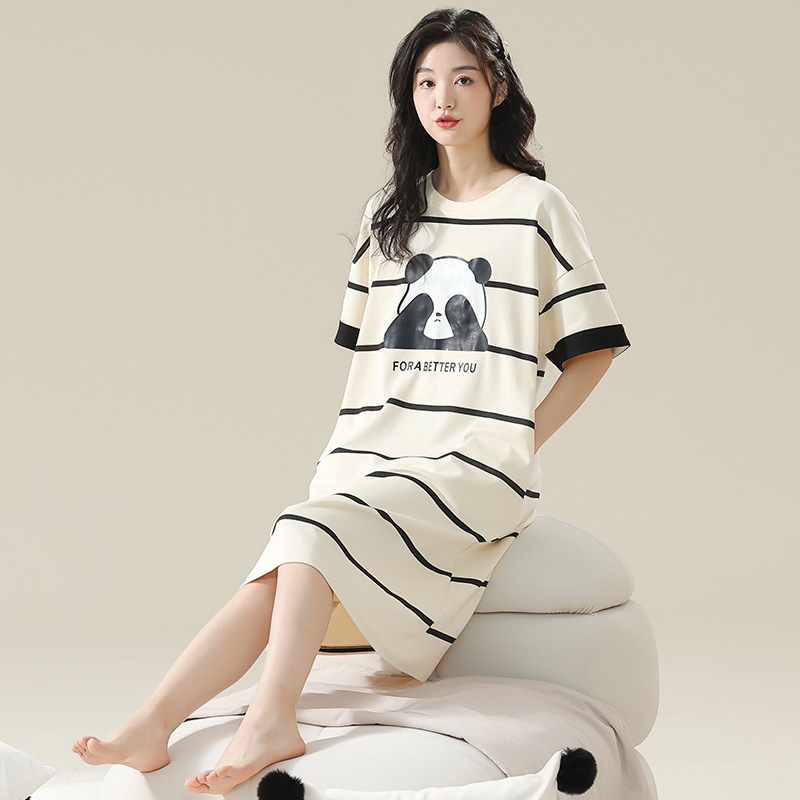 クラス A 抗菌綿ナイトガウン女性の夏の半袖ドレスミドル丈少女漫画綿大きいサイズのパジャマ