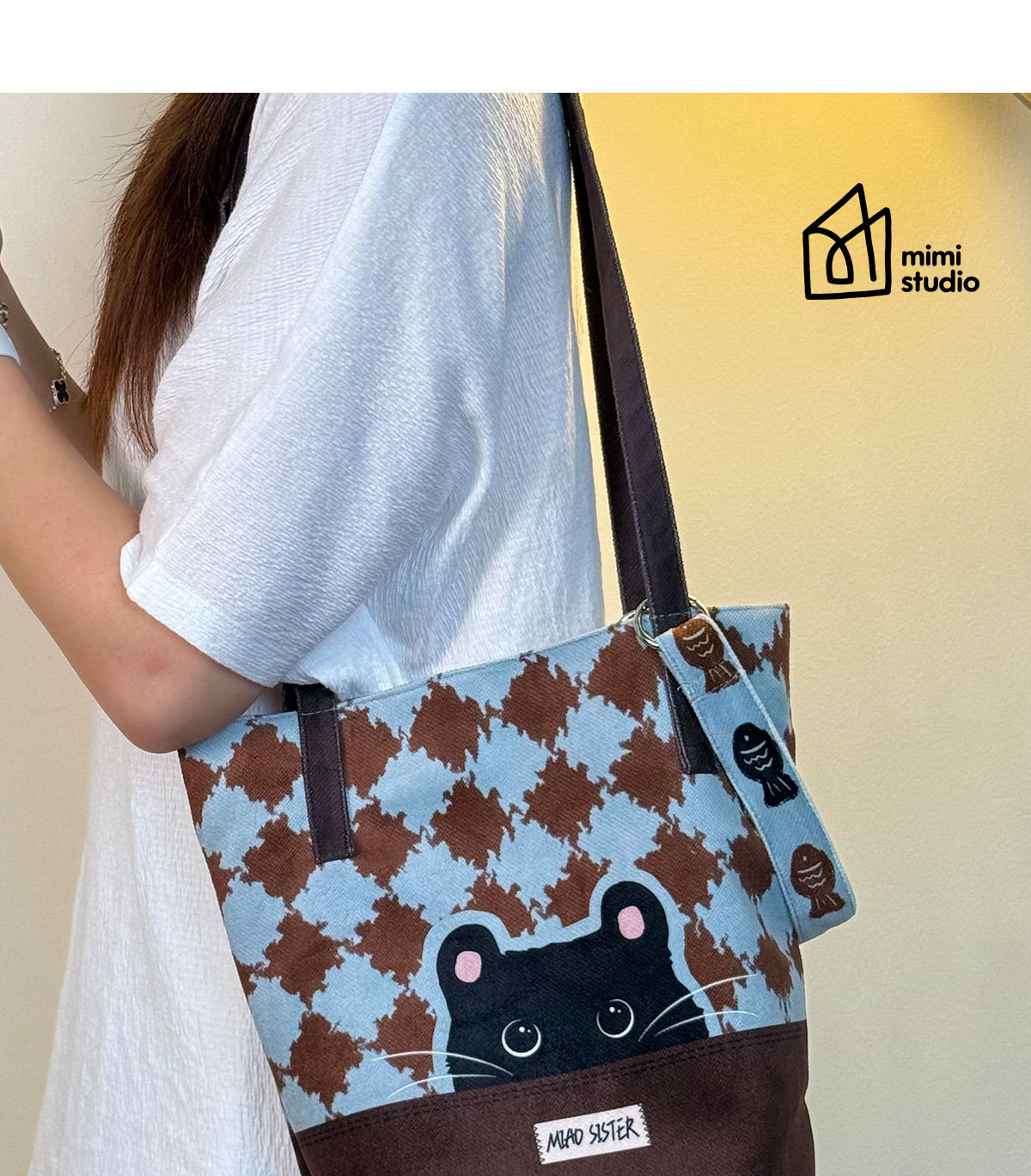 mimi可爱探头猫猫手拎单肩斜挎细肩带水桶包新款通勤百搭文创礼物