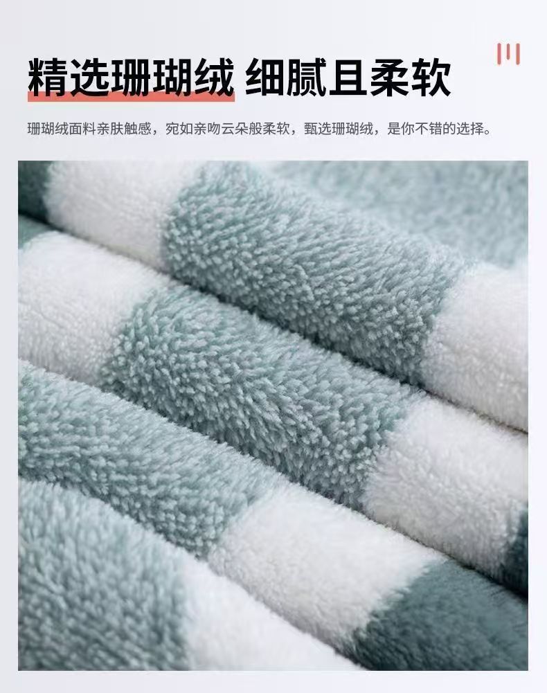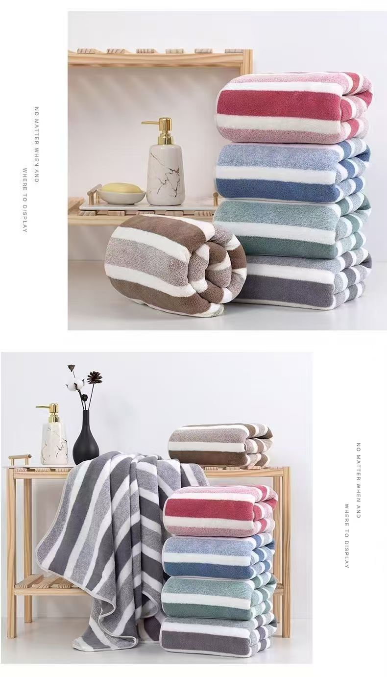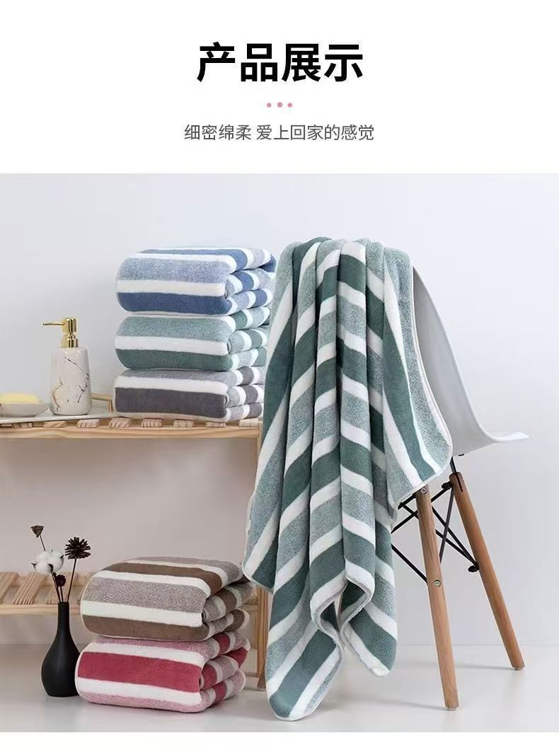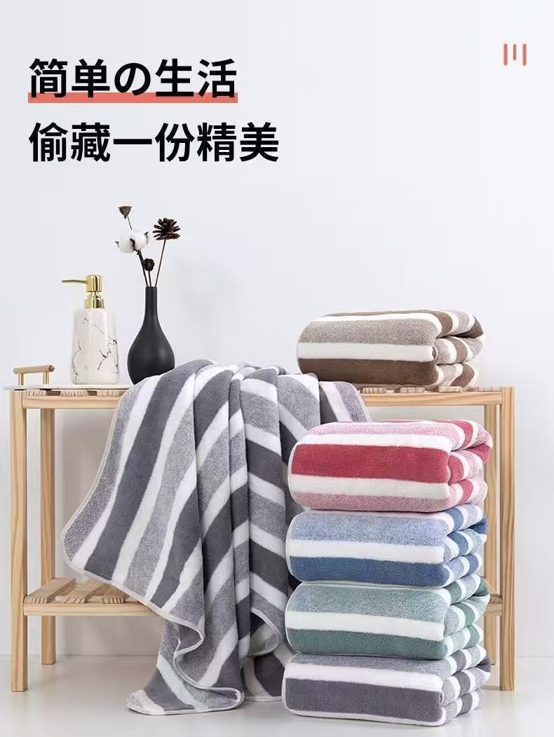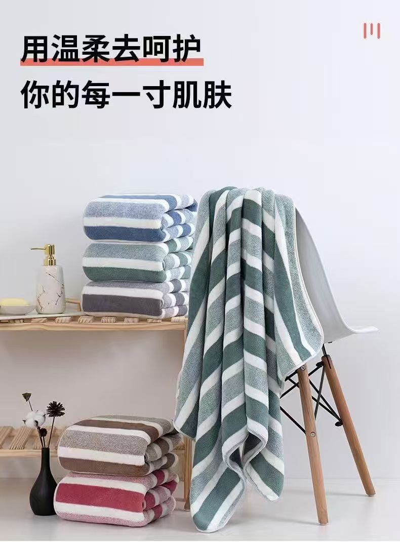 跨境珊瑚绒毛巾浴巾套装宽条纹家用加大加厚不掉毛柔软吸水洗脸巾