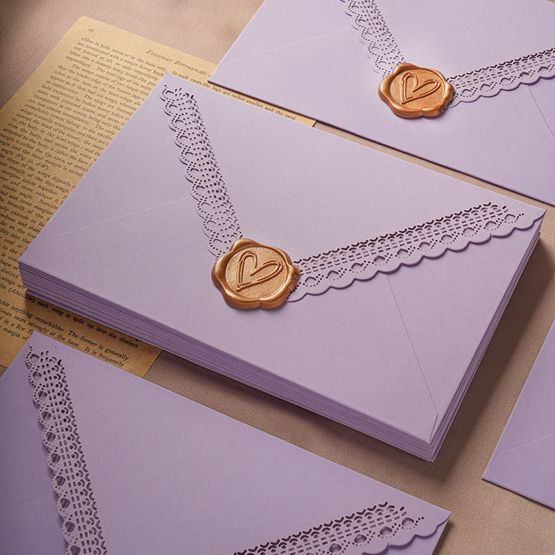 纤羽拾光彩色蕾丝镂空三角信封激光雕刻花边生日结婚请柬婚礼邀请