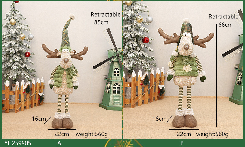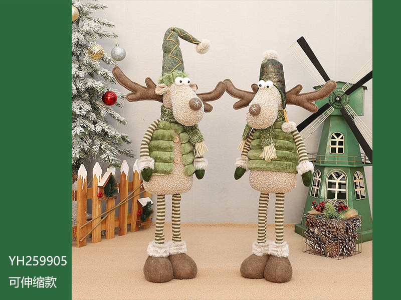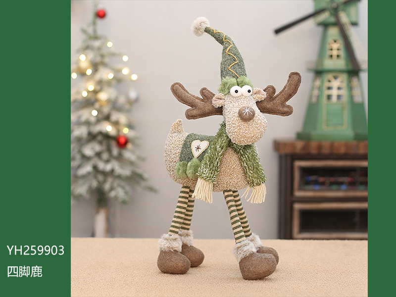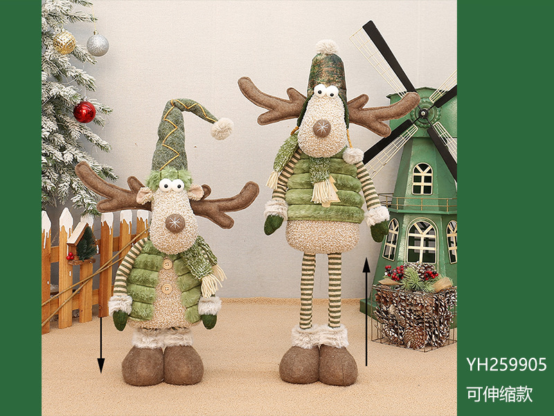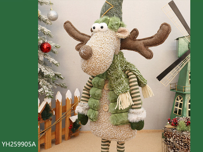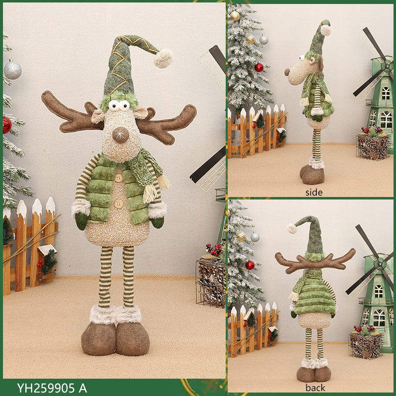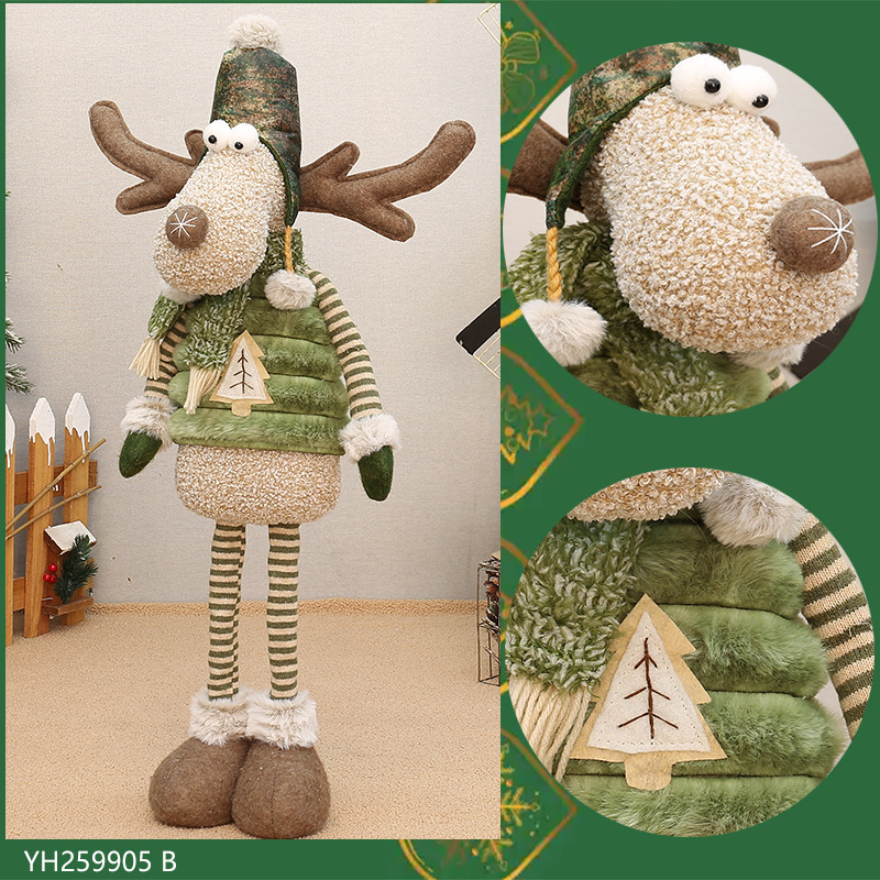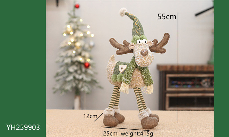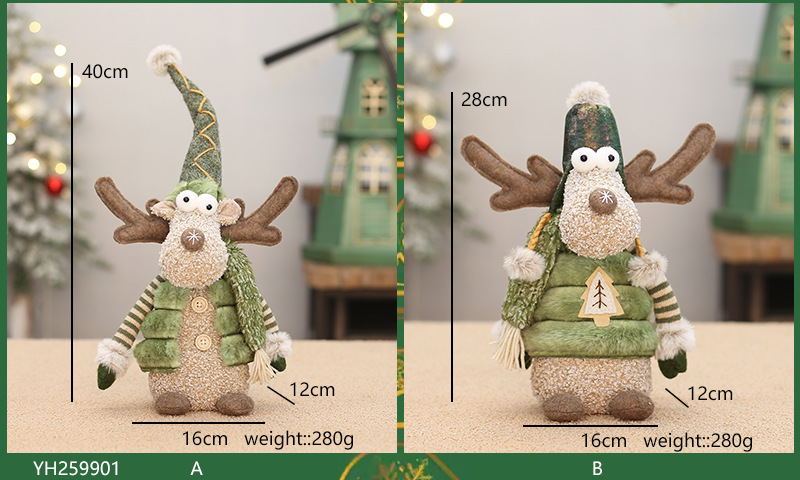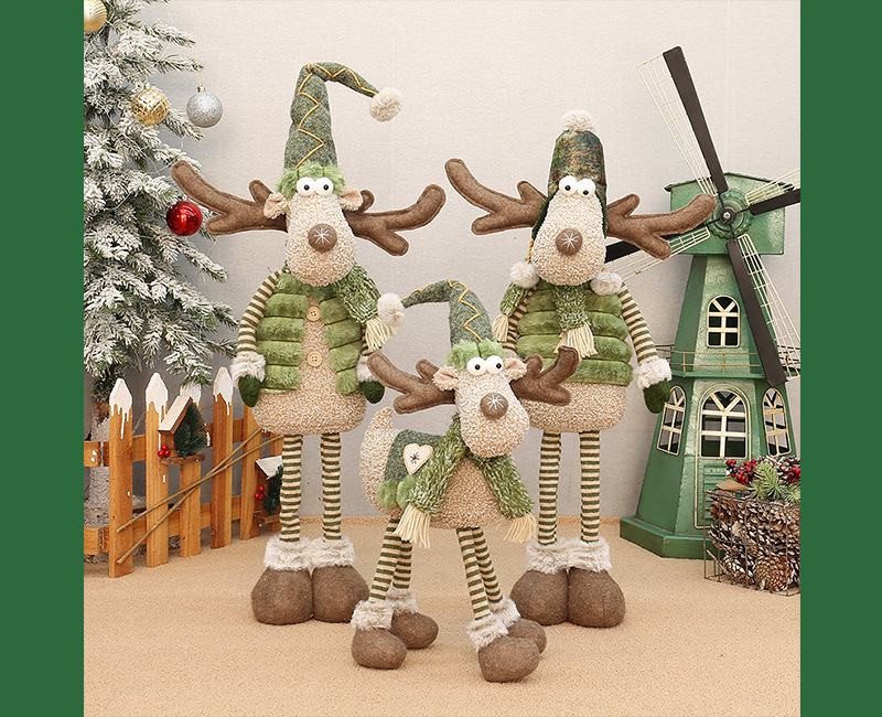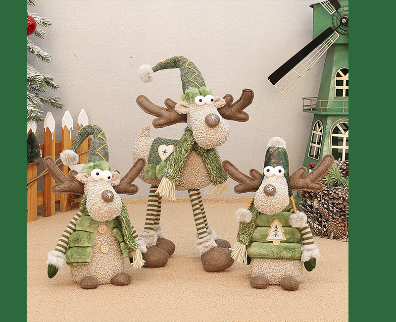 工厂现货批发圣诞新品绿色布艺长嘴麋鹿公仔圣诞节布景装饰品摆件
