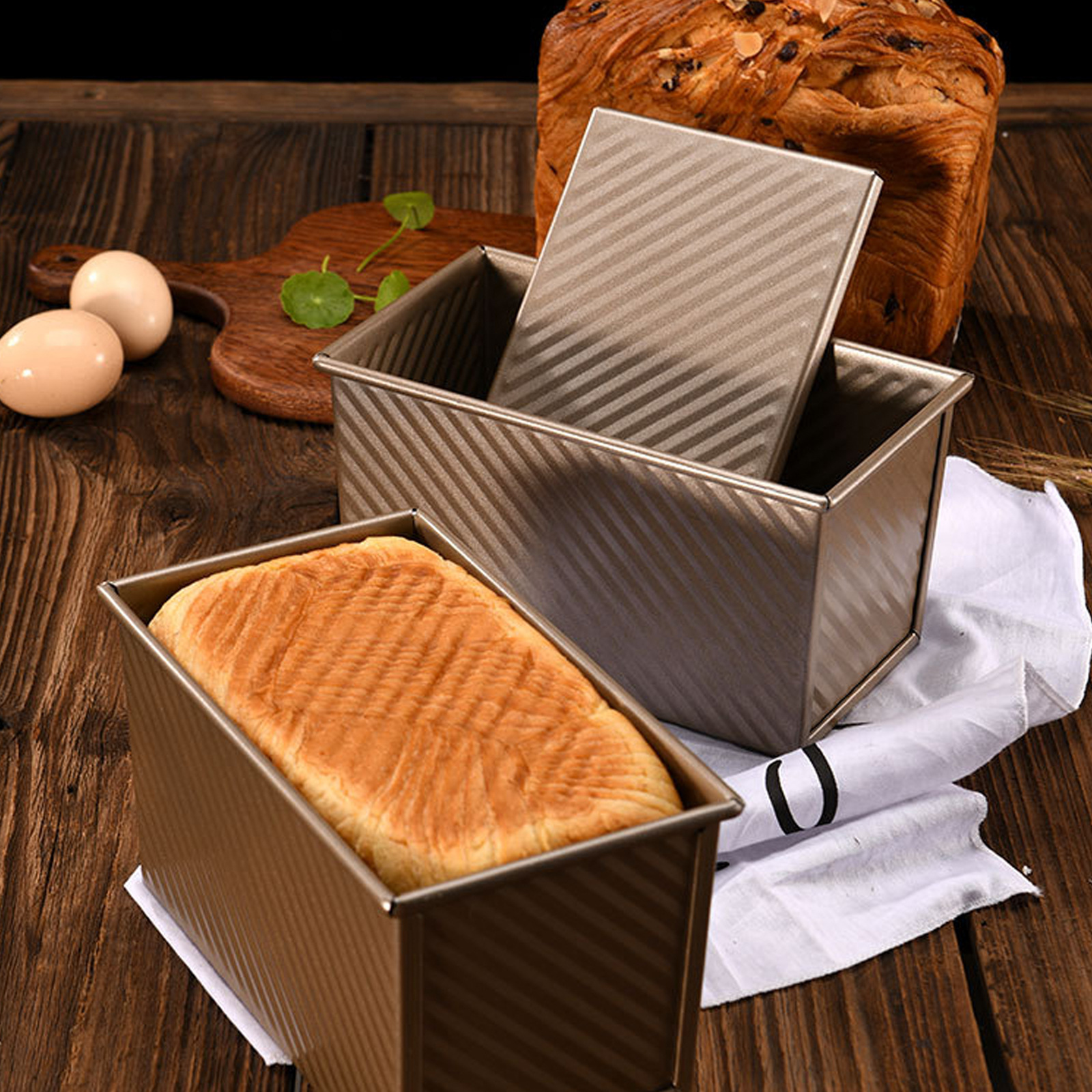 金色碳钢吐司波纹带盖烘焙工具面包盒不沾土司盒烤箱烤盘面包模具