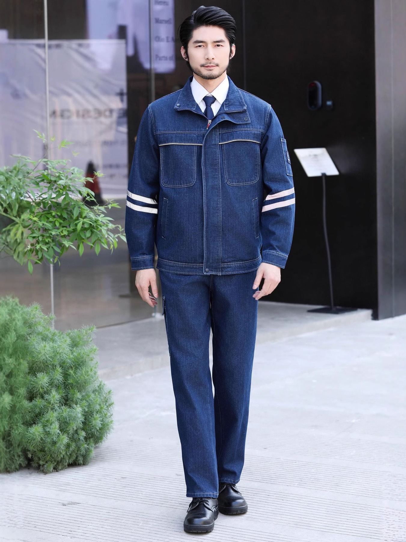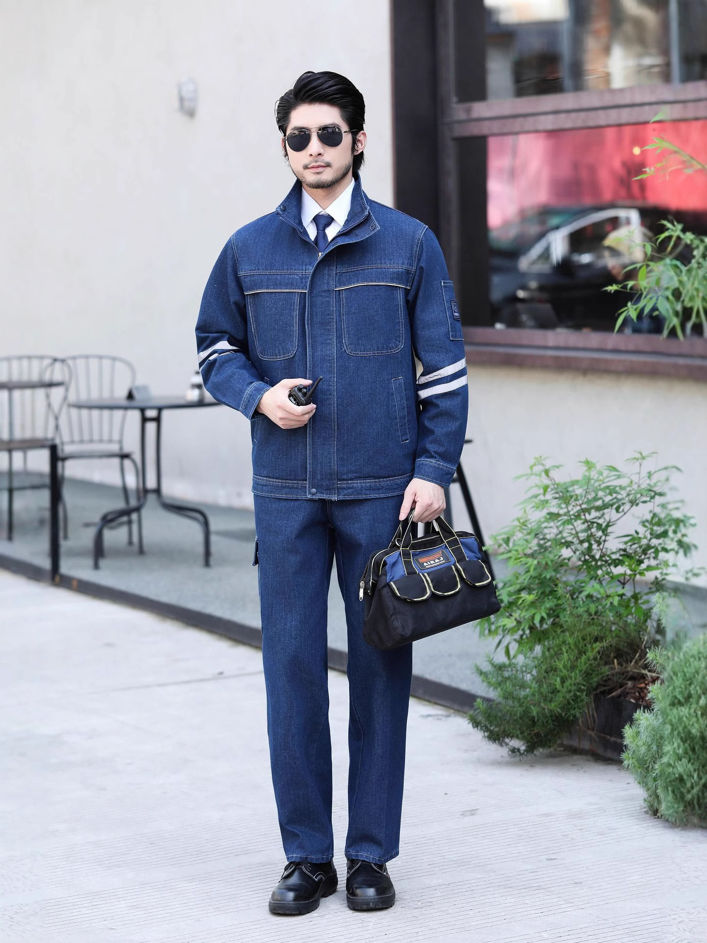 牛仔工作服套装春秋劳保服耐磨耐脏电焊耐烫抗火星焊工服定制批发