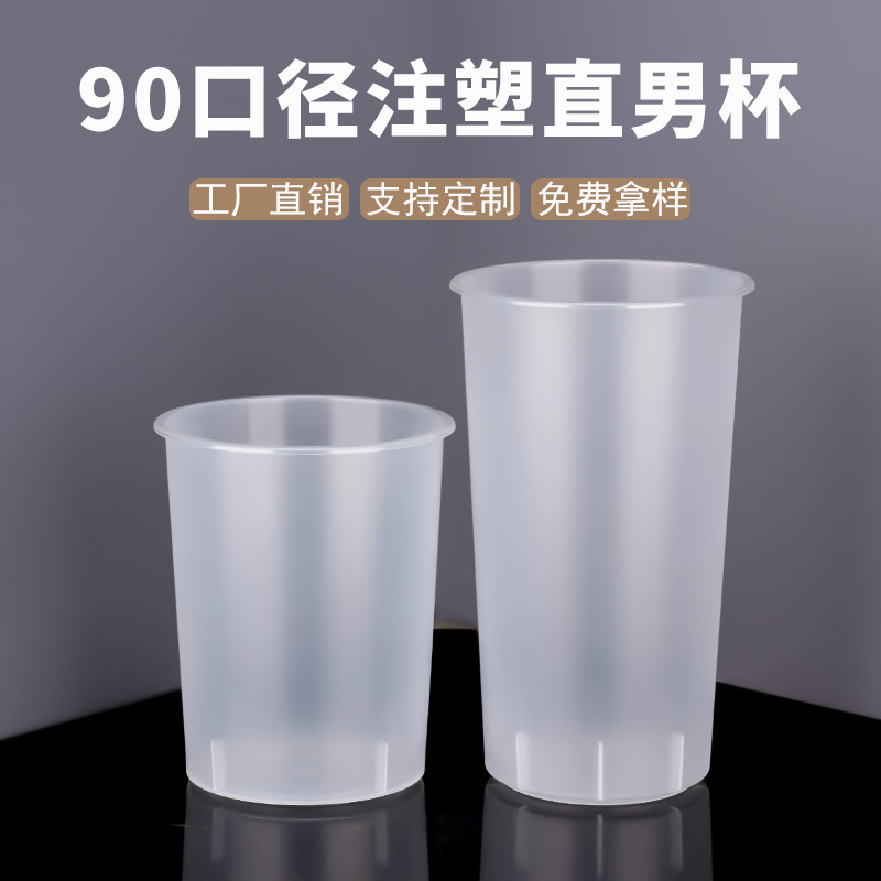 网红直男杯90口径奶茶杯一次性注塑杯磨砂直筒杯加厚饮料打包杯