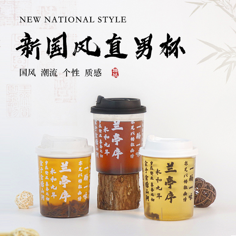 蘭亭序ネット赤直男杯500mlフロスト射出成形カップ使い捨てミルクカップ国風冷たい飲み物包装カップ