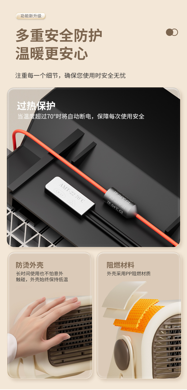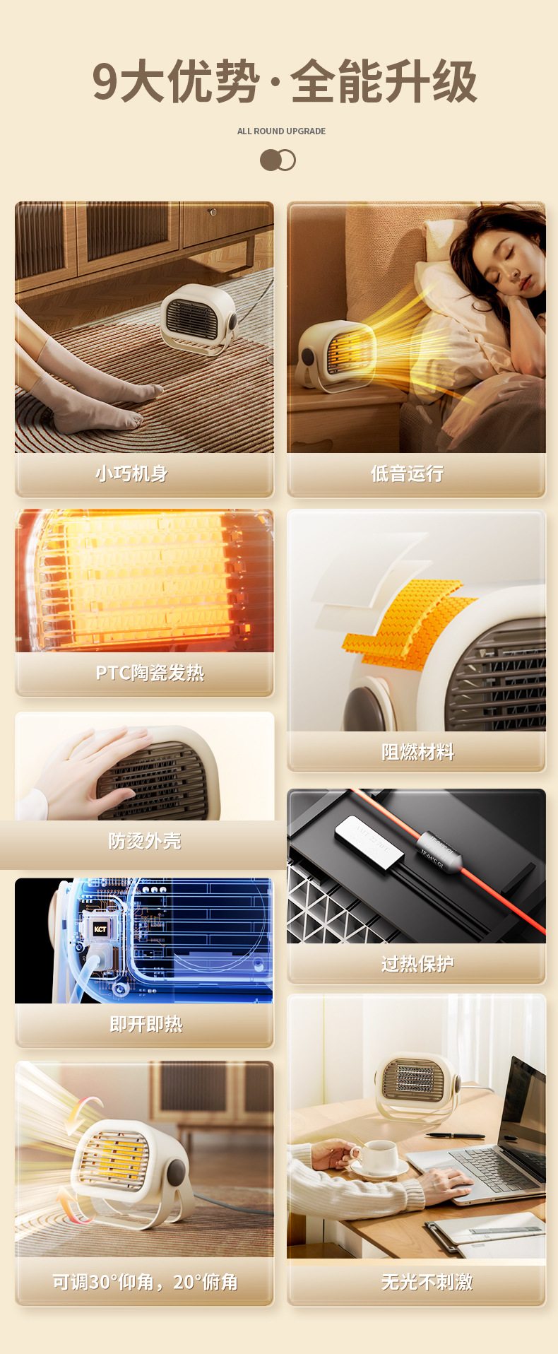 扬子桌面暖风机小型速热取暖器宿舍小太阳节能低噪办公室取暖神器