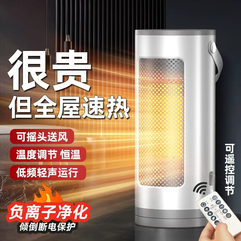 立式暖风机摇头取暖器摇头PTC速热遥控电暖器负离子家用倾倒保护
