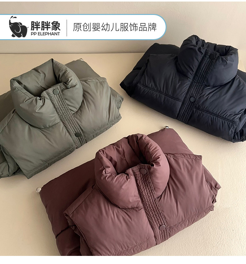 秋冬季新款男童女童小孩连帽加厚纯色白鸭绒羽绒服 中大小童 短款