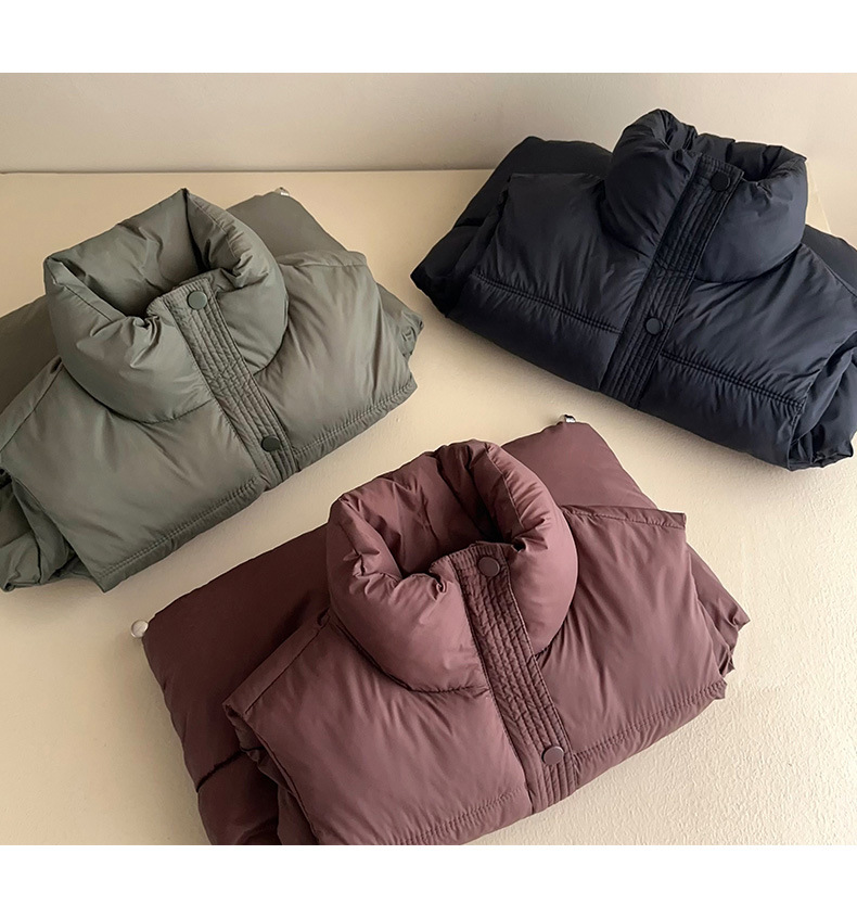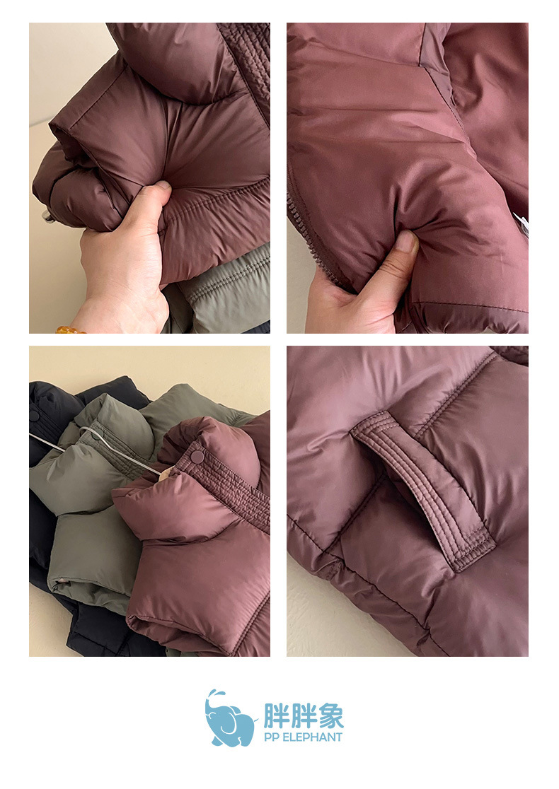 2025年冬新作 子供用厚手防寒中高学年向け無地フード付きダウンジャケット ショートタイプ