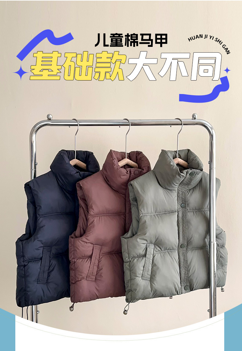 2025秋冬新款男女儿童羽绒棉服马甲背心百搭中大童棉衣棉服保暖