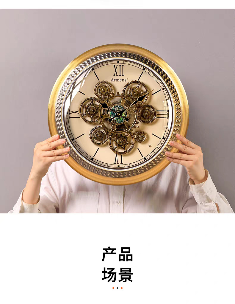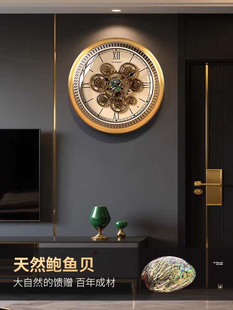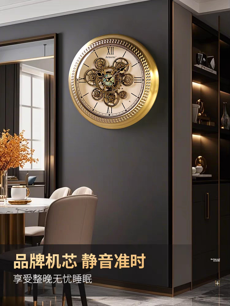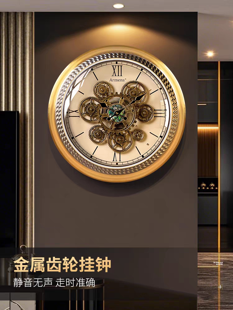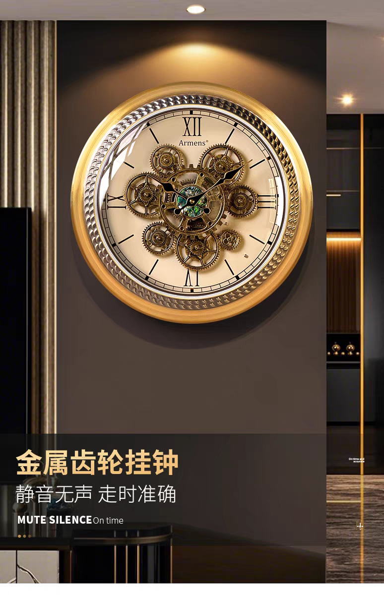 2025新款轻奢高级机械壁钟欧式齿轮金属复古挂钟客厅装饰创意钟表