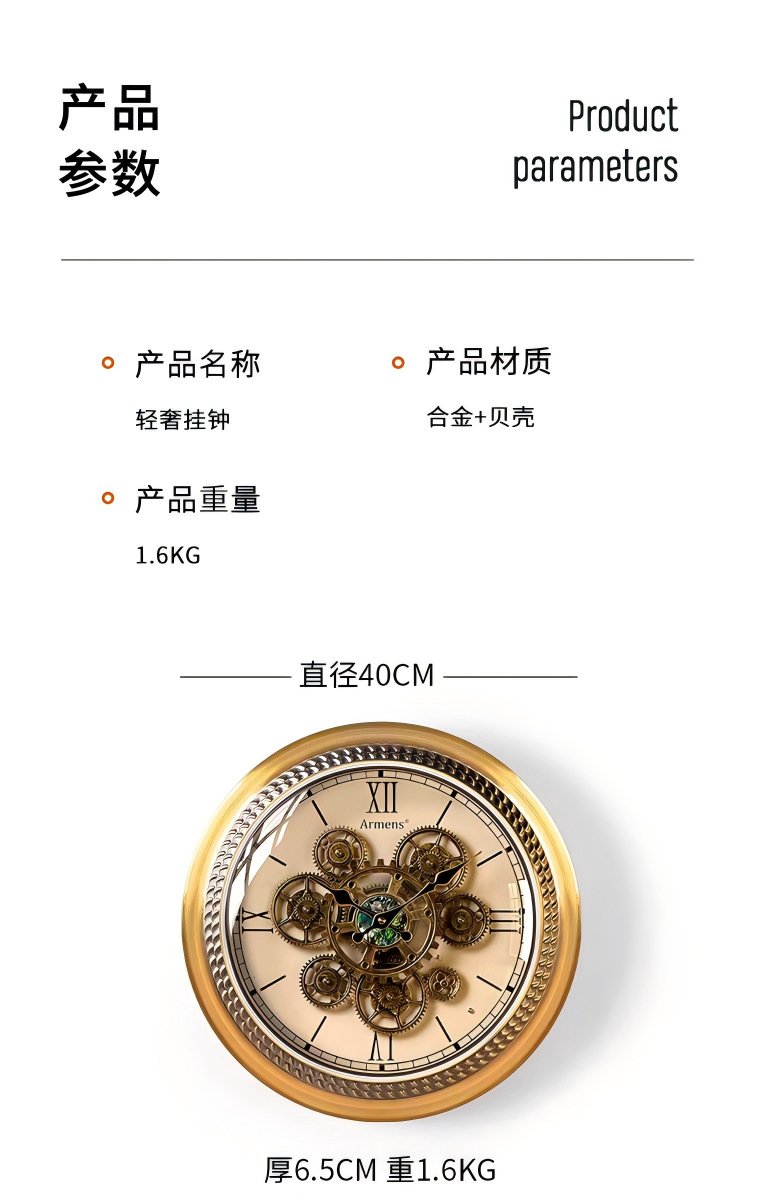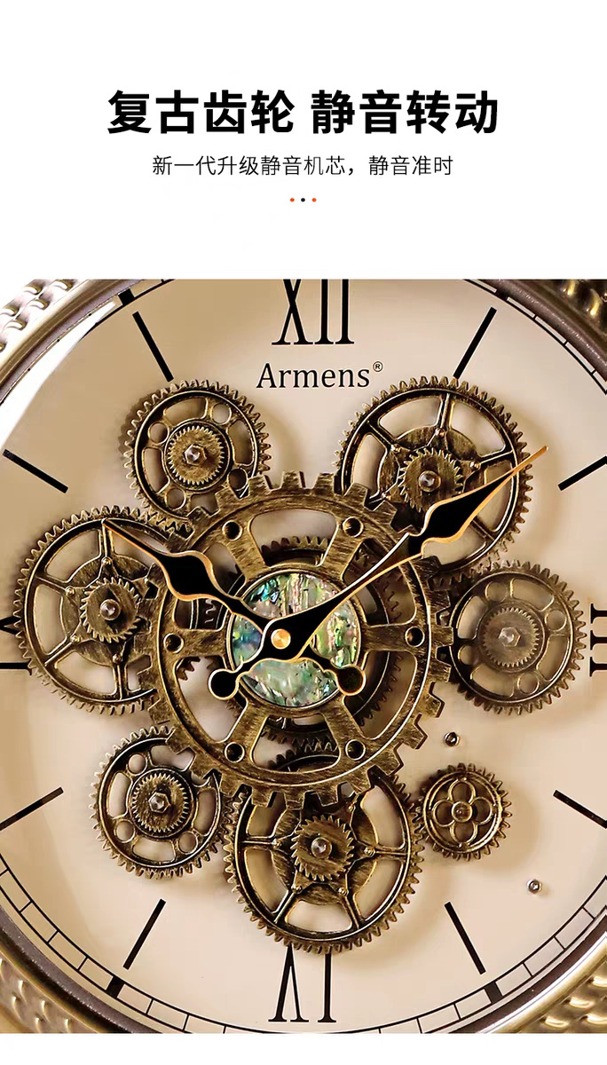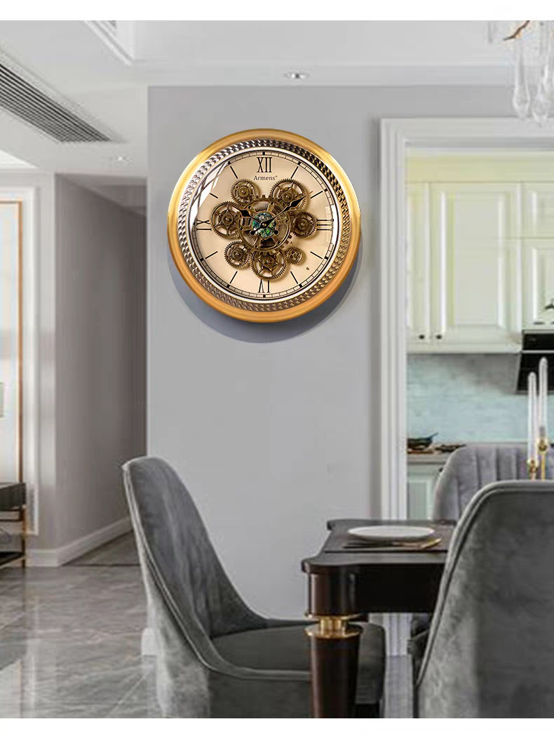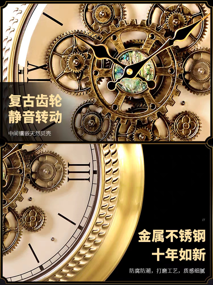 2025新款轻奢高级机械壁钟欧式齿轮金属复古挂钟客厅装饰创意钟表