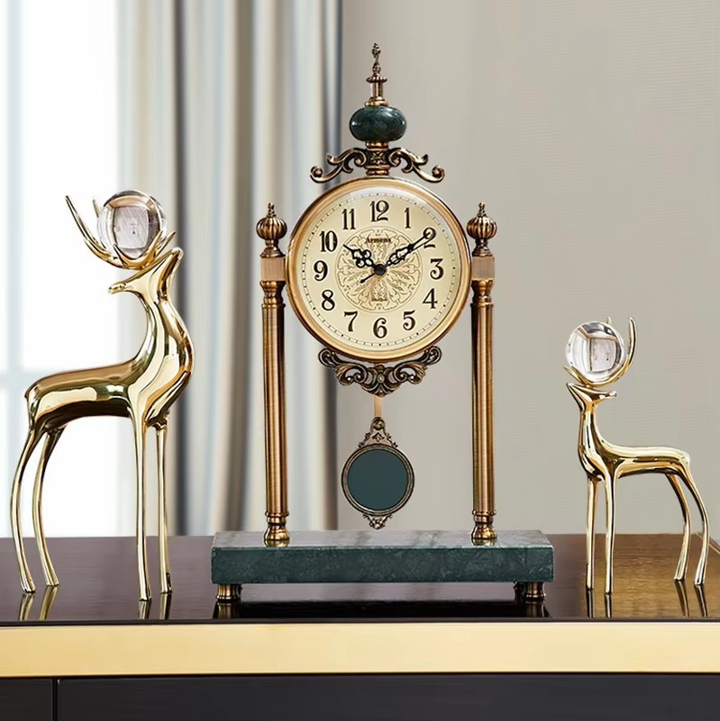 ヨーロッパのリビングルームの金属置時計装飾品時計置時計座る時計ライト高級クリエイティブ装飾時計アンティークレトロスタイル