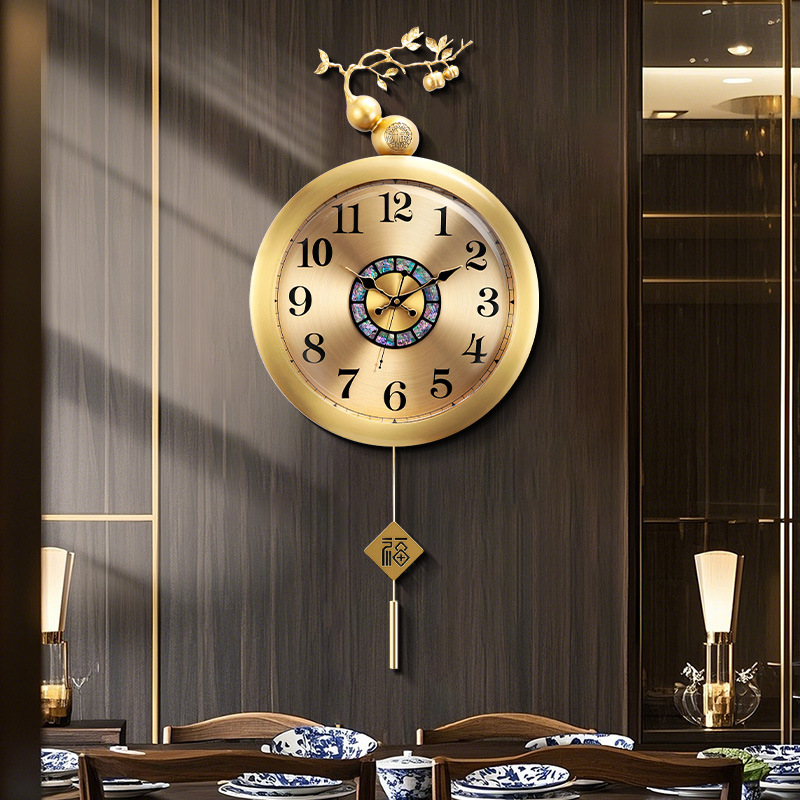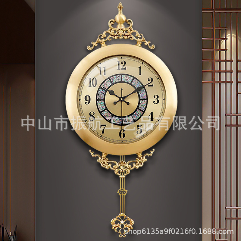 新型ヨーロッパ式真鍮レトロ軽豪華リビング家庭用掛け時計アメリカ式時計大気掛け時計高級壁掛け時計