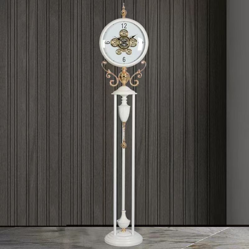 垂直時計装飾ラウンドアメリカンライト高級ヨーロピアンスタイルフリップフロア時計リビングルームファッショナブルなニッチ垂直時計ギア
