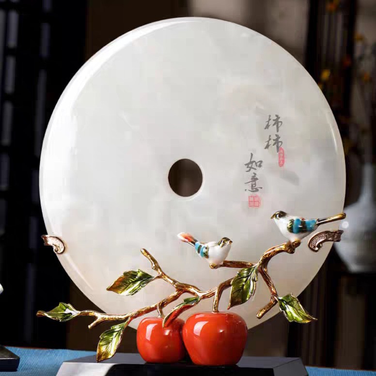 翡翠平安玉飾り オフィス リビングルーム デスクトップ 家庭用 エナメル工芸品 記念品 ギフトボックス入り 文房具
