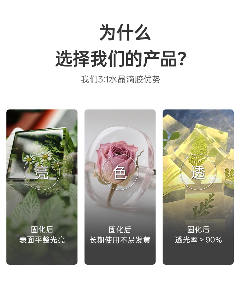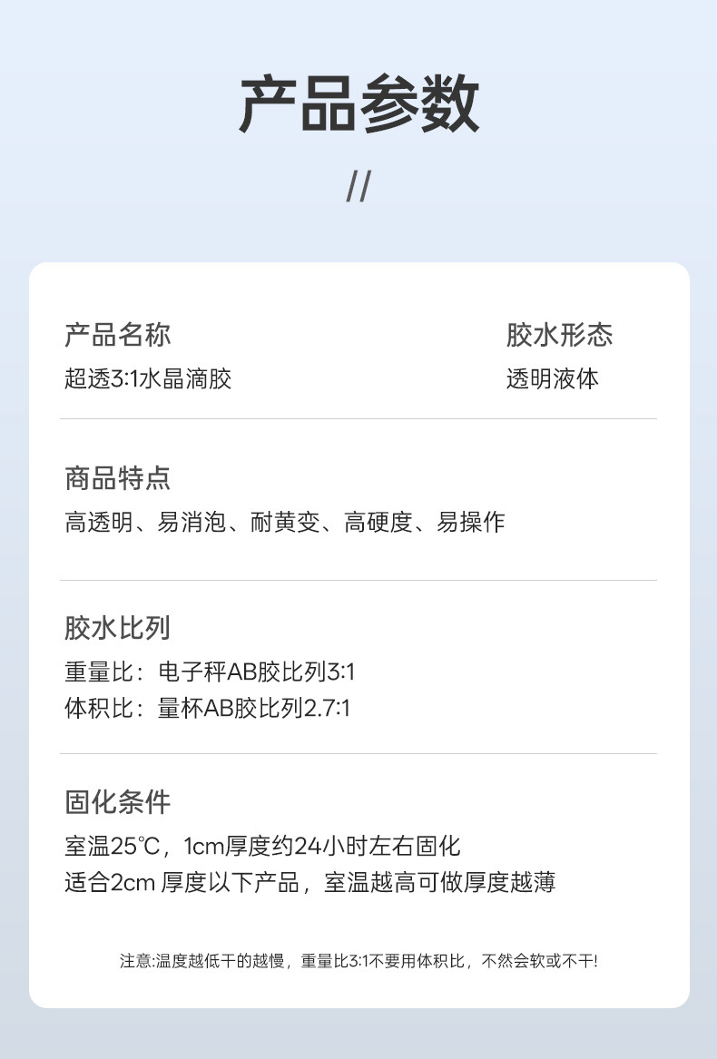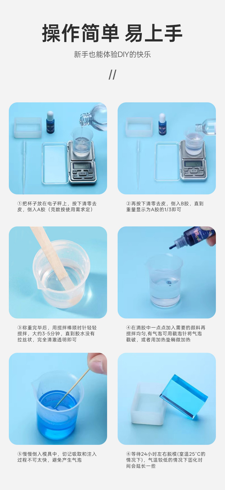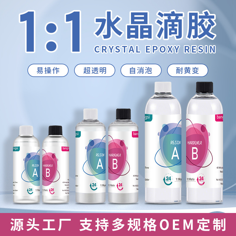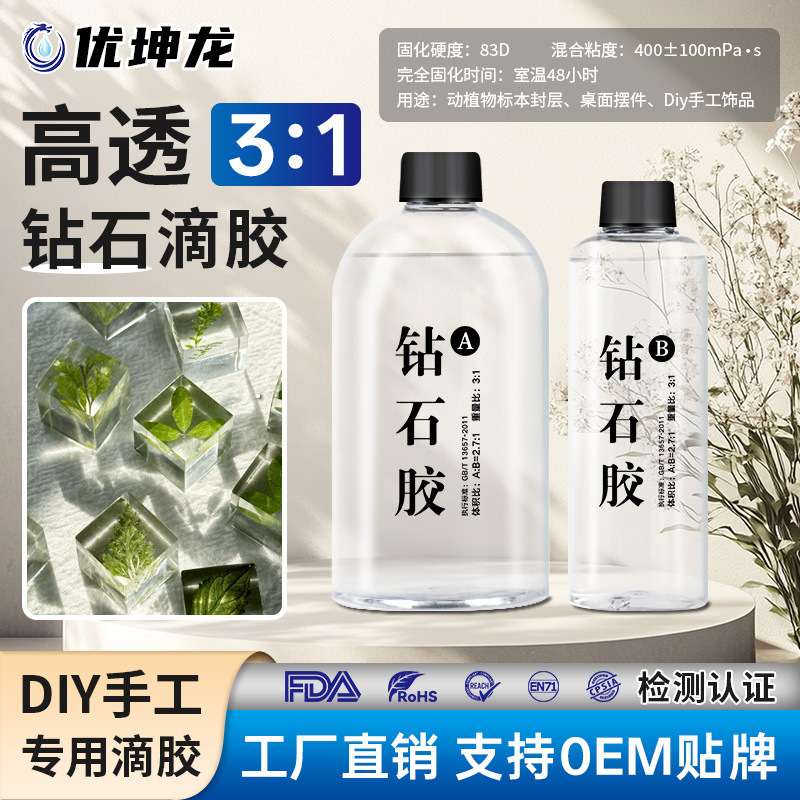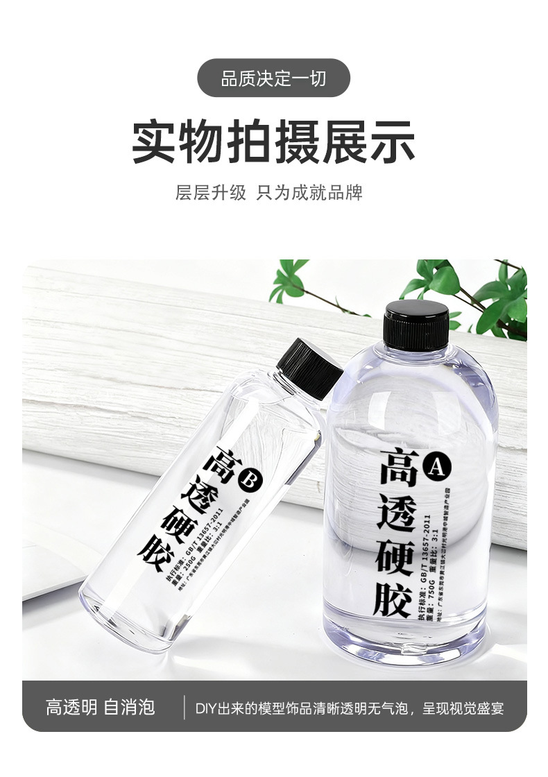 水晶滴胶高透明3:1自消泡diy材料高硬度可打磨耐黄变环氧树脂ab胶