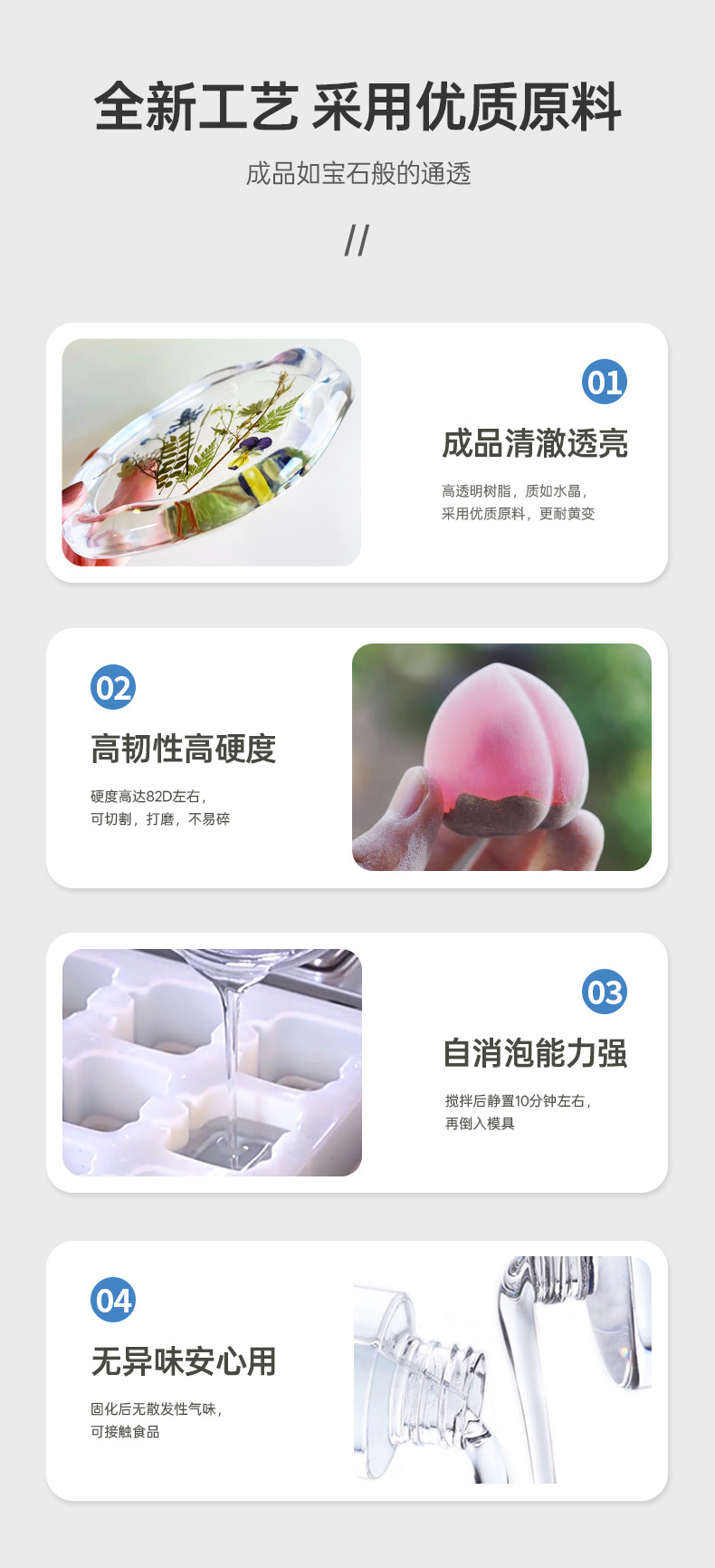 环保高清超透明滴胶环氧树脂ab胶手工diy自消泡耐黄变水晶滴胶