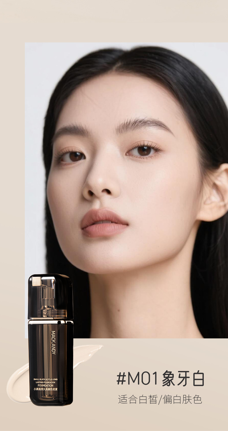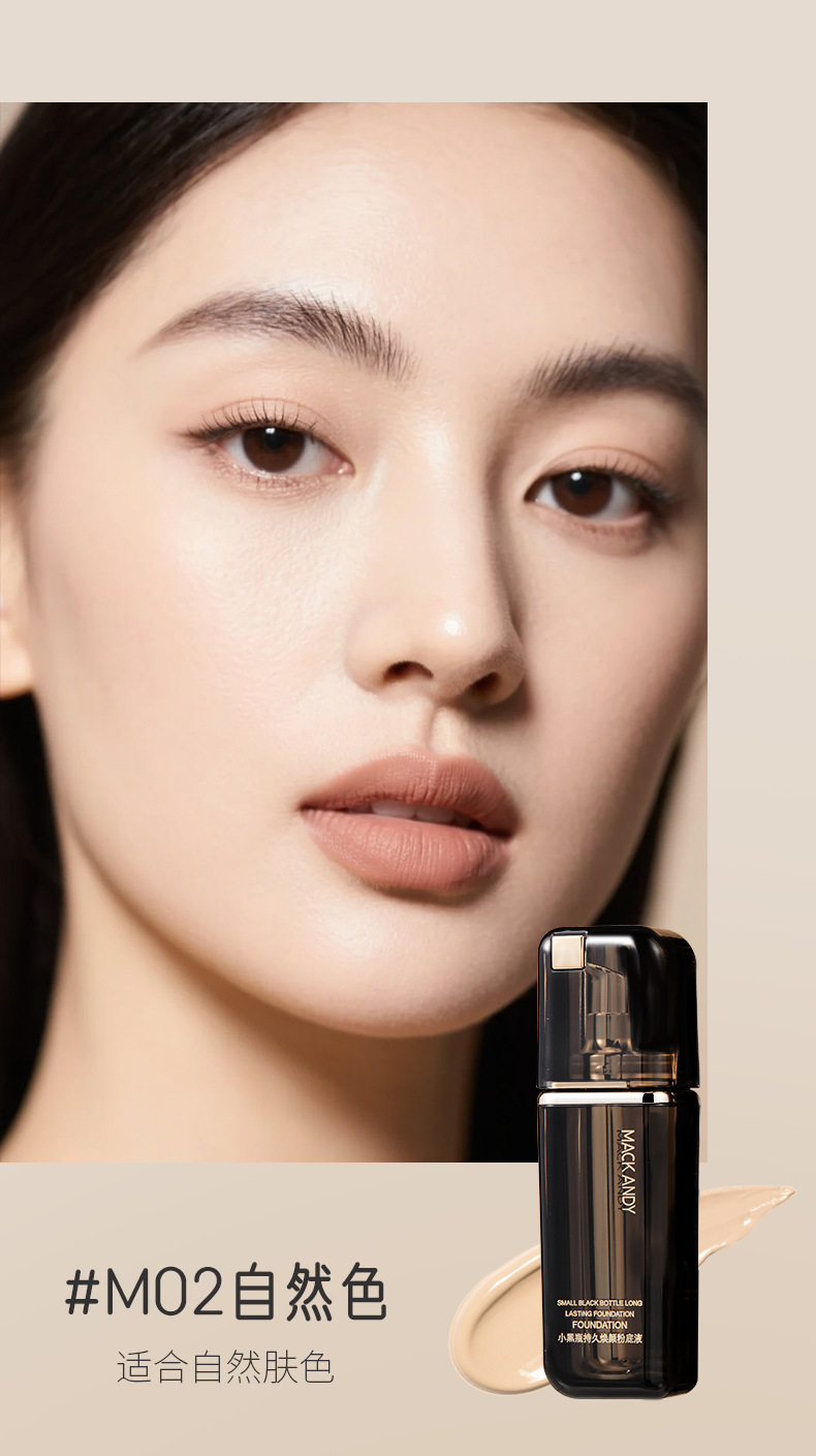 玛可安迪小黑瓶持久焕颜粉底液遮瑕自然滋润不易脱妆服帖提亮肤色