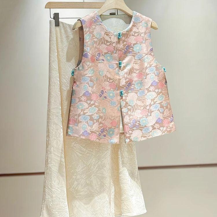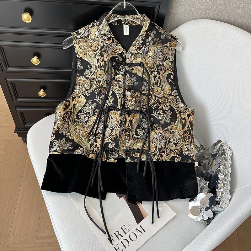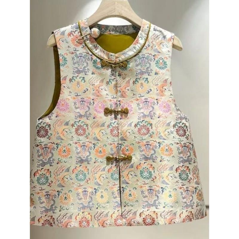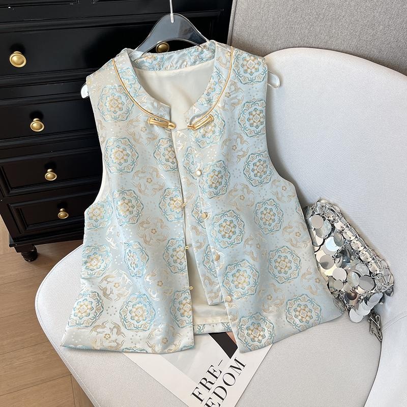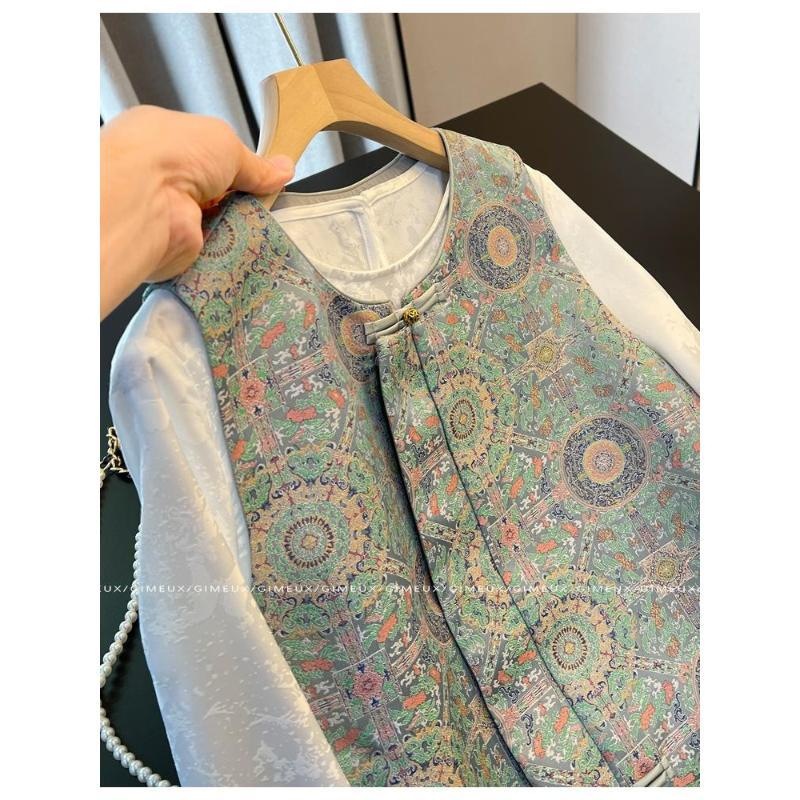 今年人気のヨーロッパ製品、ニッチな新しい中国風のプリントアウターレイヤードベスト、女性用2025新しいスタイル
