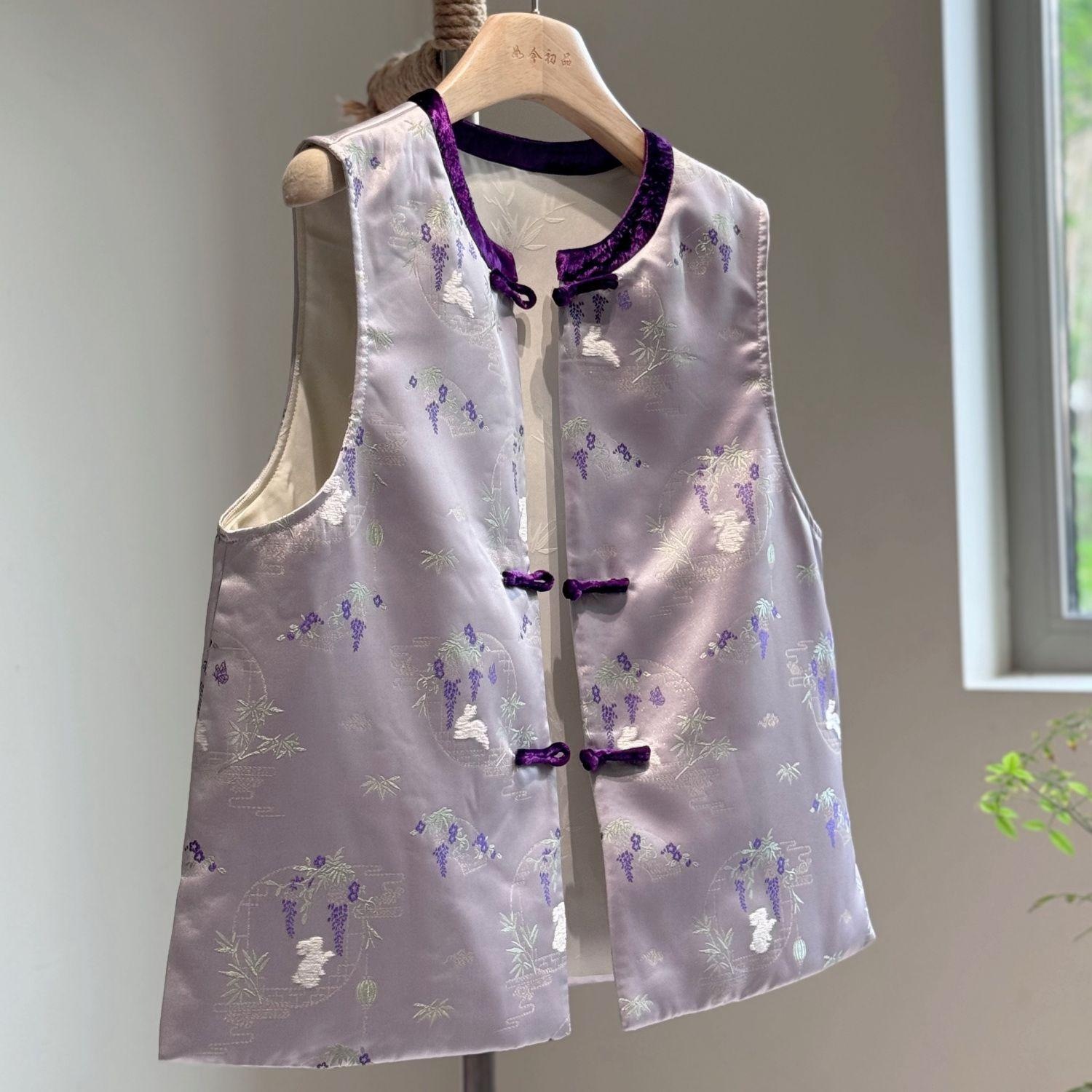 2025春装新中国式薄紫馬甲外着ベストサテン改良唐装若いタイプ国風女
