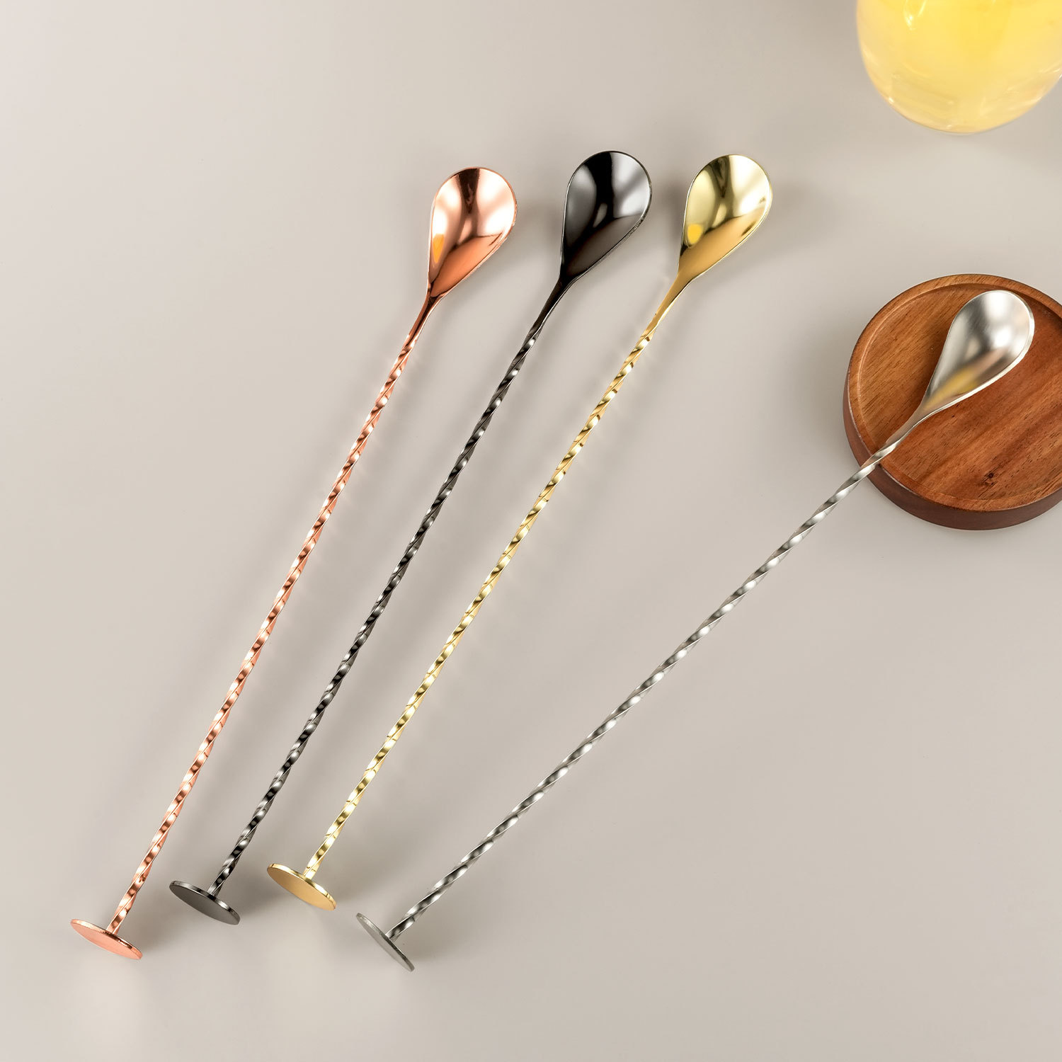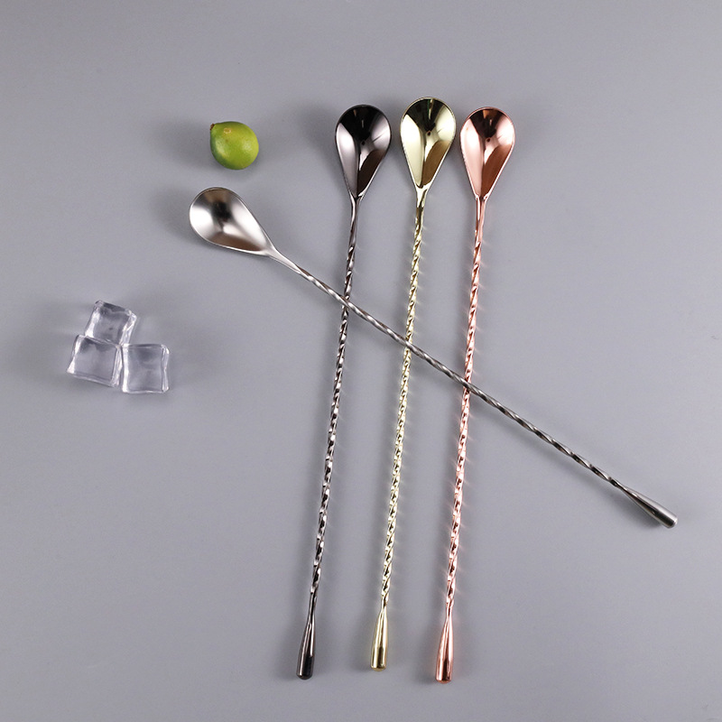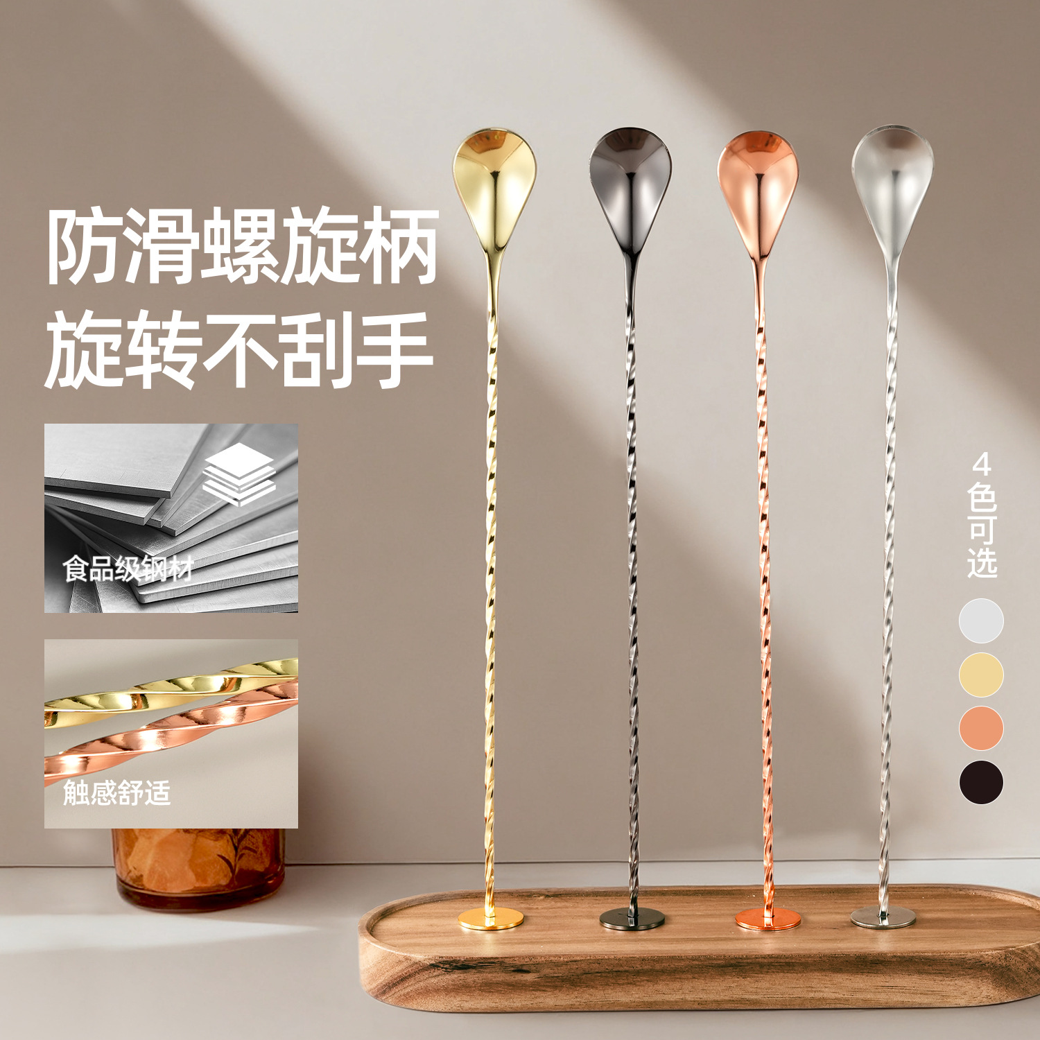 调酒棒咖啡饮品搅拌工具不锈钢螺旋柄搅拌勺水滴吧勺 泪滴勺