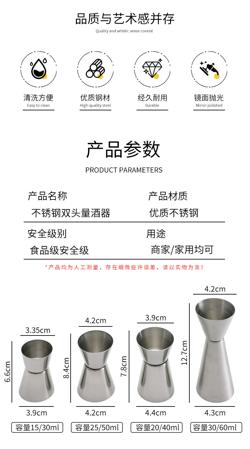 両頭カール付き目盛り付きオンスカップ バー ミルクティーショップ バーテンダーツール ステンレスカップ カクテル オンスカップ